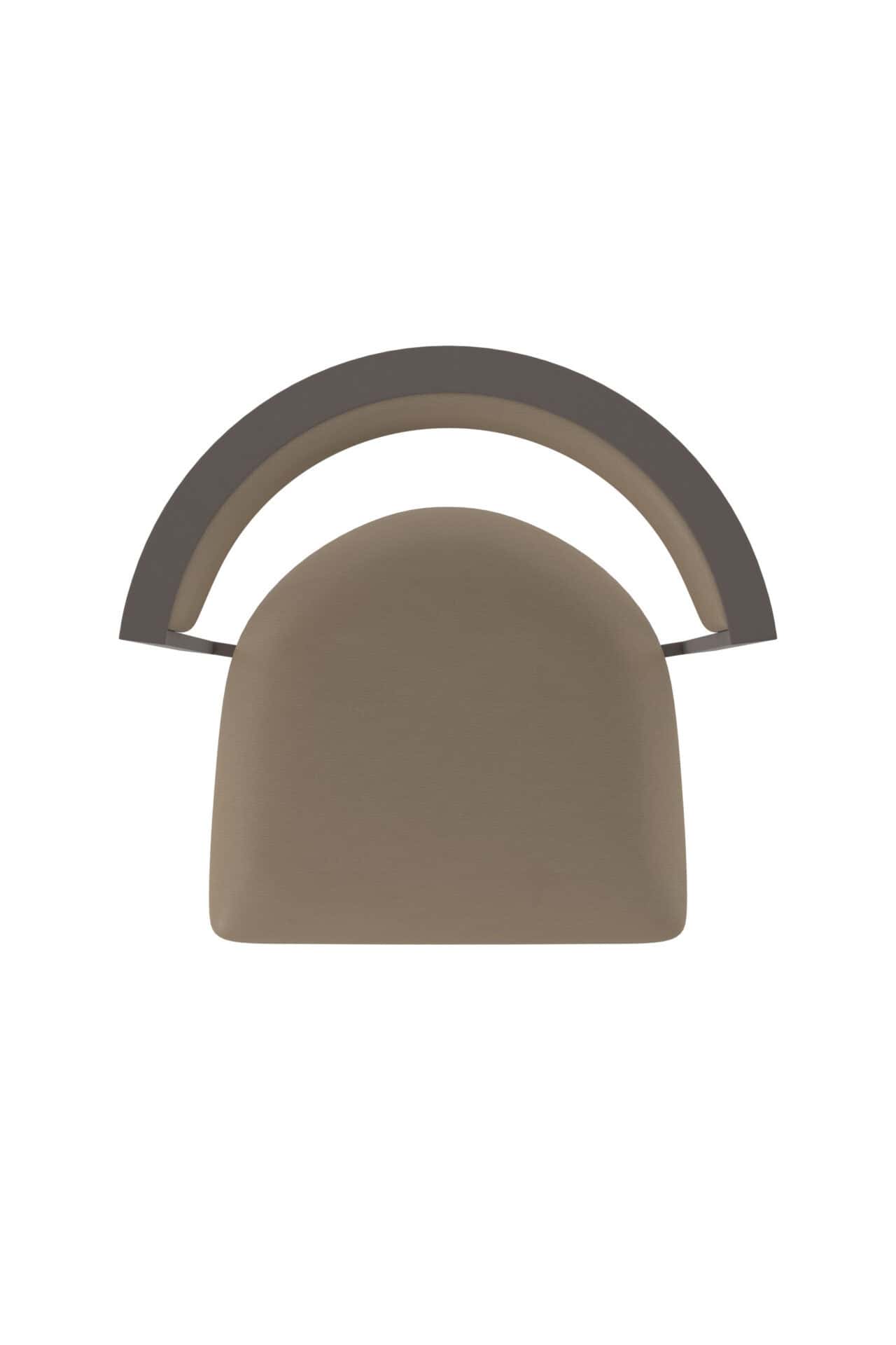 - Back: Padded and upholstered tall back for enhanced design, comfort, and support with vinyl and fabric options. Accented by strong, sleek metal bars matching the base finish.