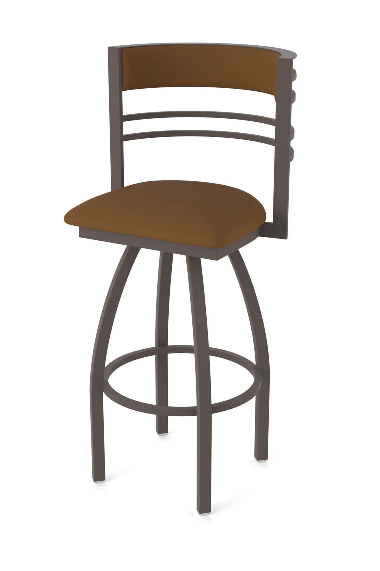 Features include a durable steel frame, a comfortable 2.5-inch cushion seat, and a smooth swivel mechanism. The tall back design enhances comfort, making this stool ideal for extended use. The bronze finish adds a touch of elegance, ensuring this stool will be a standout piece in your space.