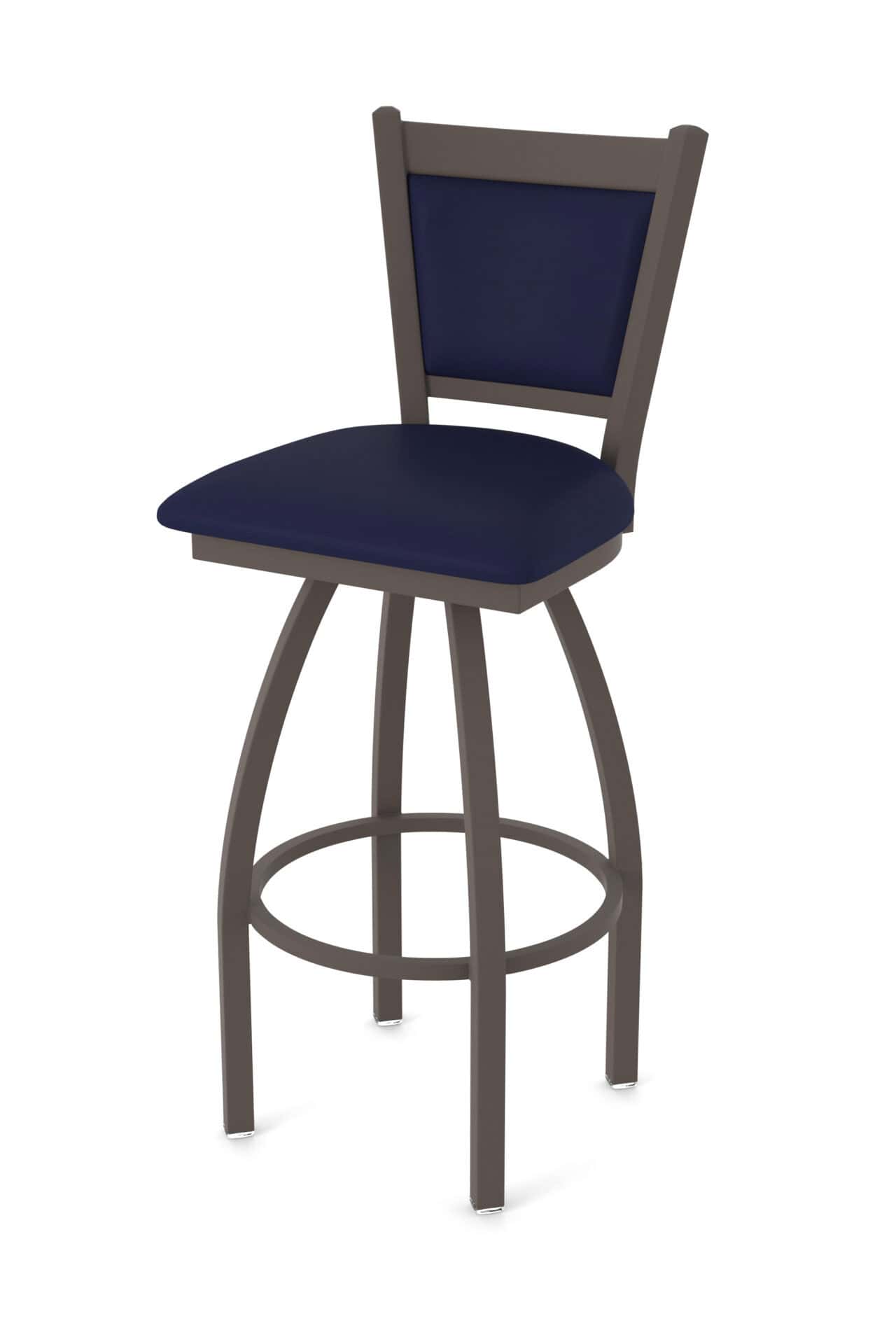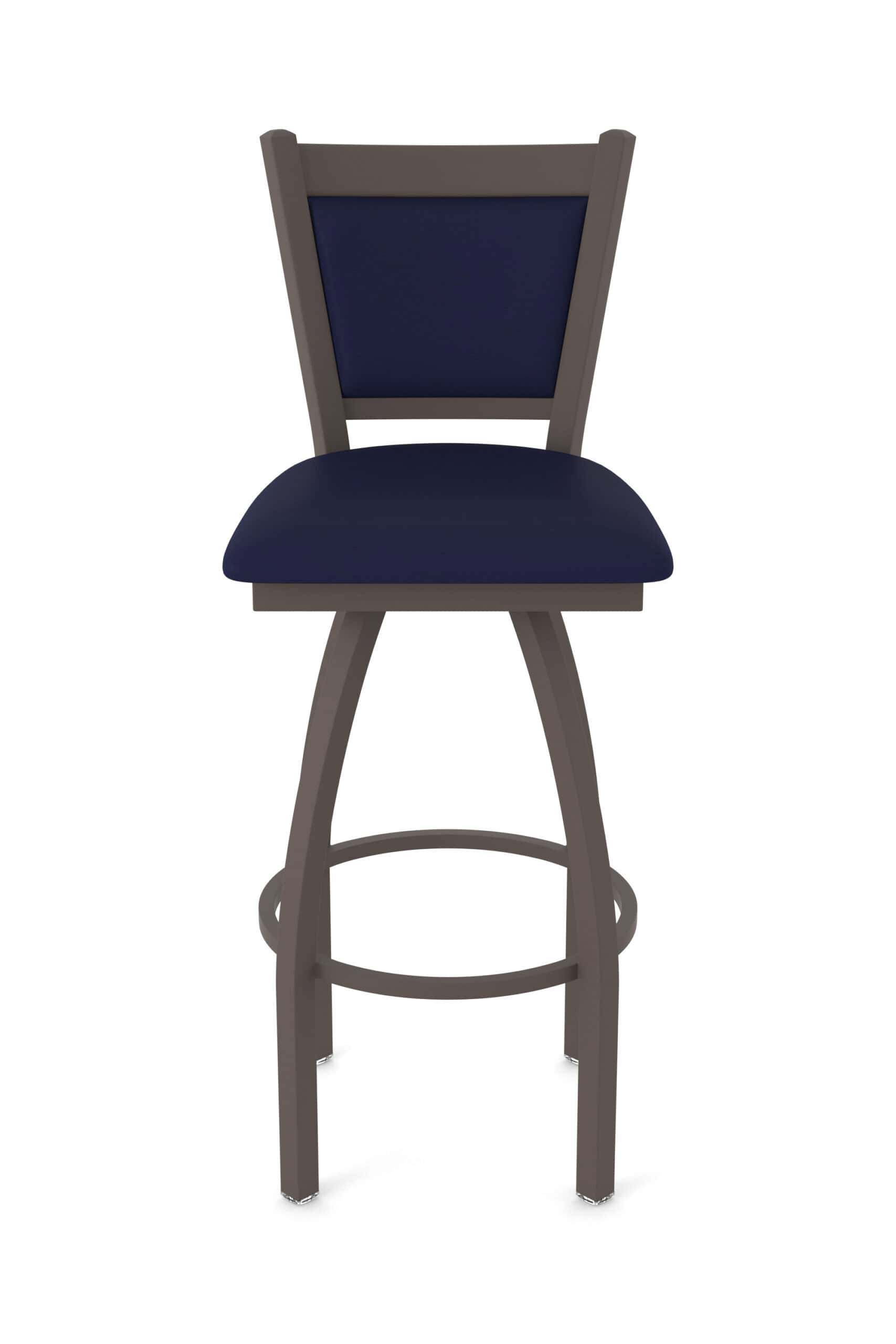 This 36-inch steel swivel bar stool seamlessly blends refined design with robust craftsmanship, offering exceptional comfort and durability. Ideal for elevated bar areas, it features a bronze finish, a Canter Twilight cushioned seat, and a supportive padded back. The stool’s swivel mechanism ensures smooth rotation, while the sturdy steel frame provides lasting stability.