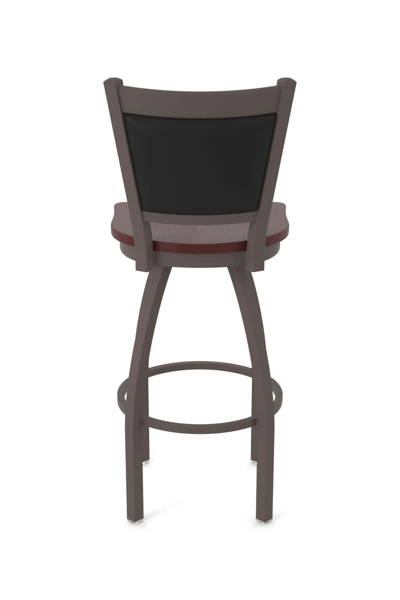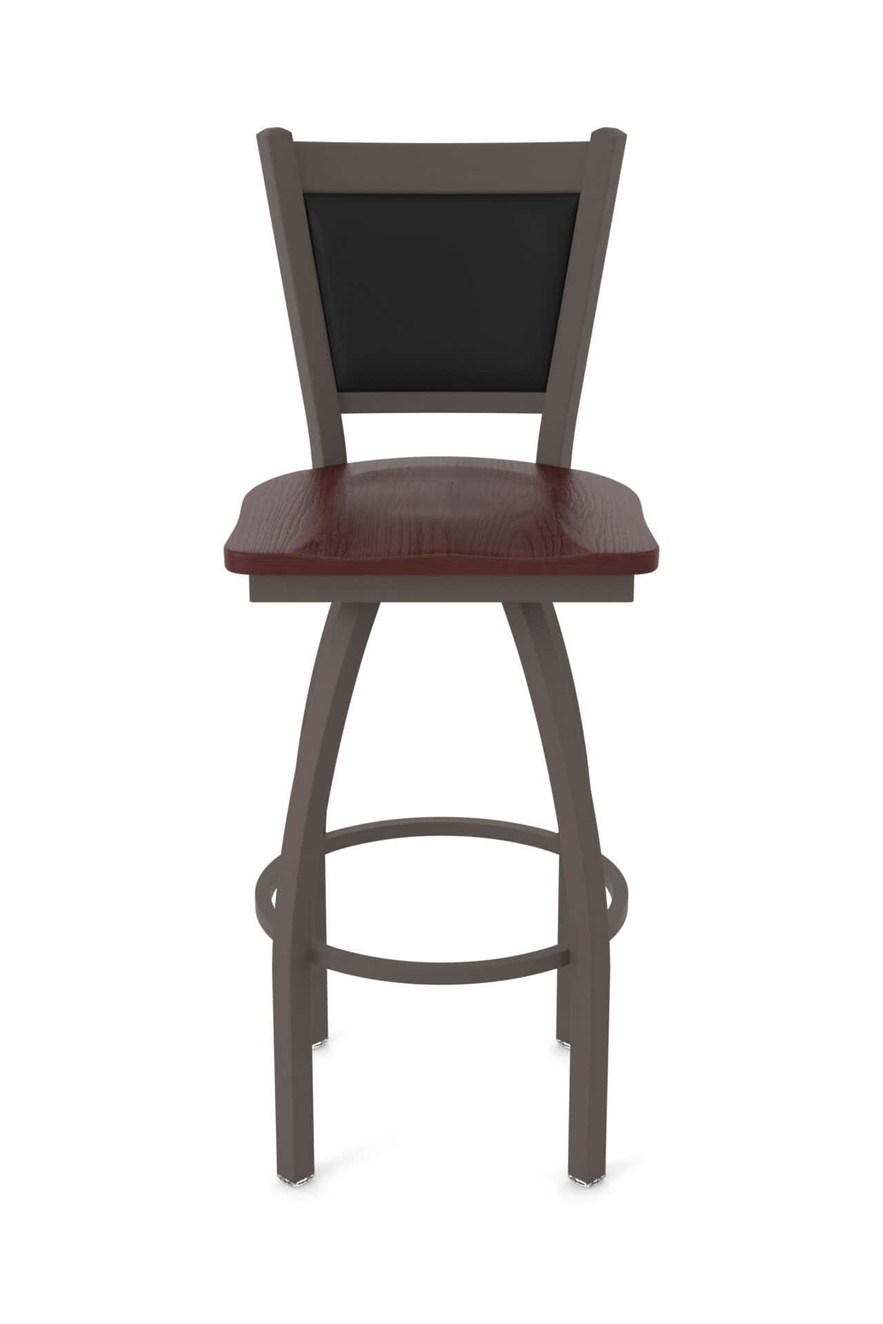 This 36-inch steel swivel bar stool combines robust construction with elegant design details, making it a perfect addition to any man cave bar. The bronze finish and dark cherry oak wood seat provide a sophisticated look, while the padded back and single-ring base ensure comfort and stability. This stool is built to last and designed for relaxation.