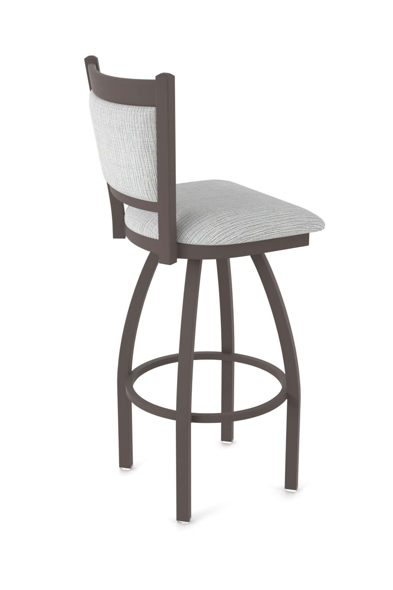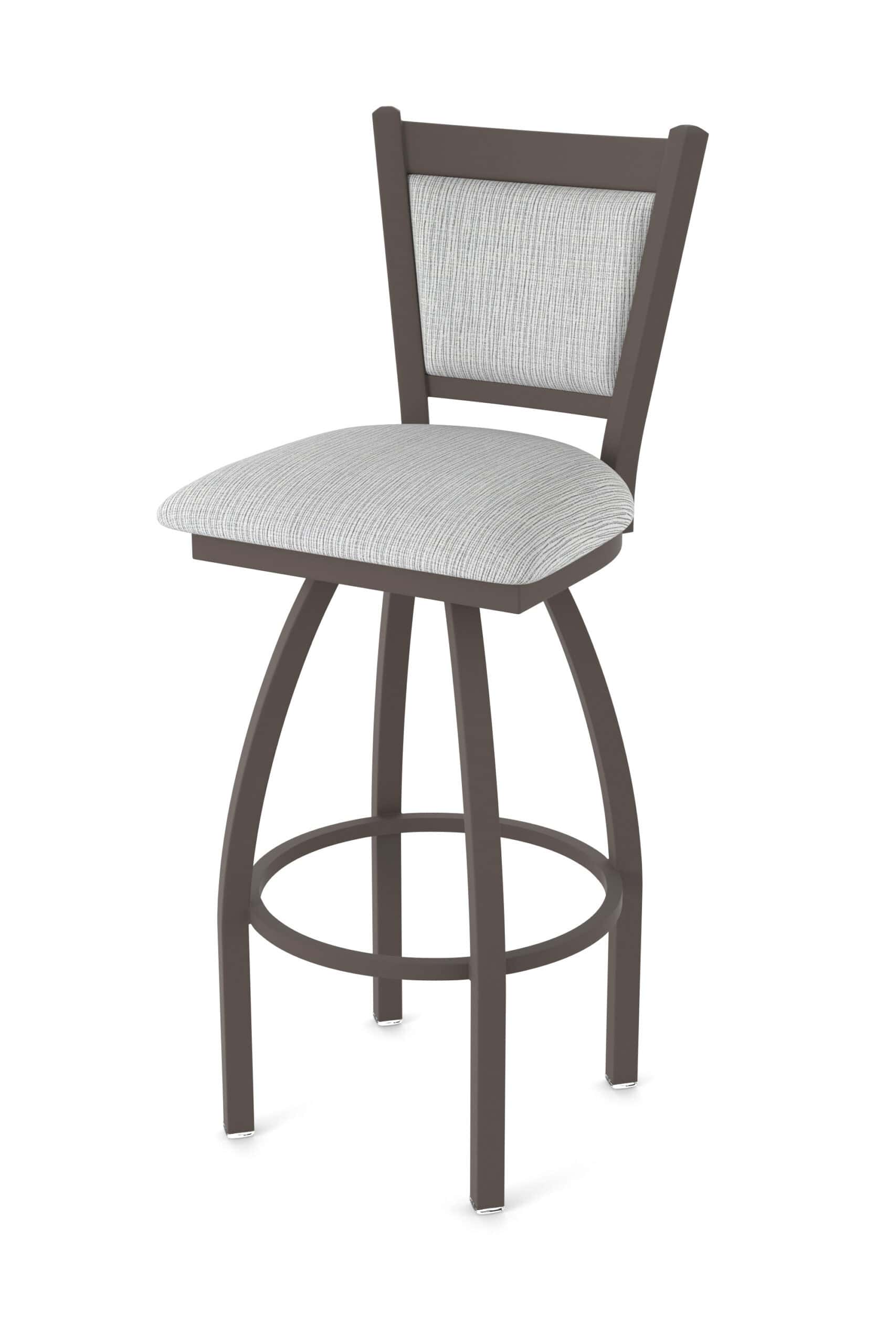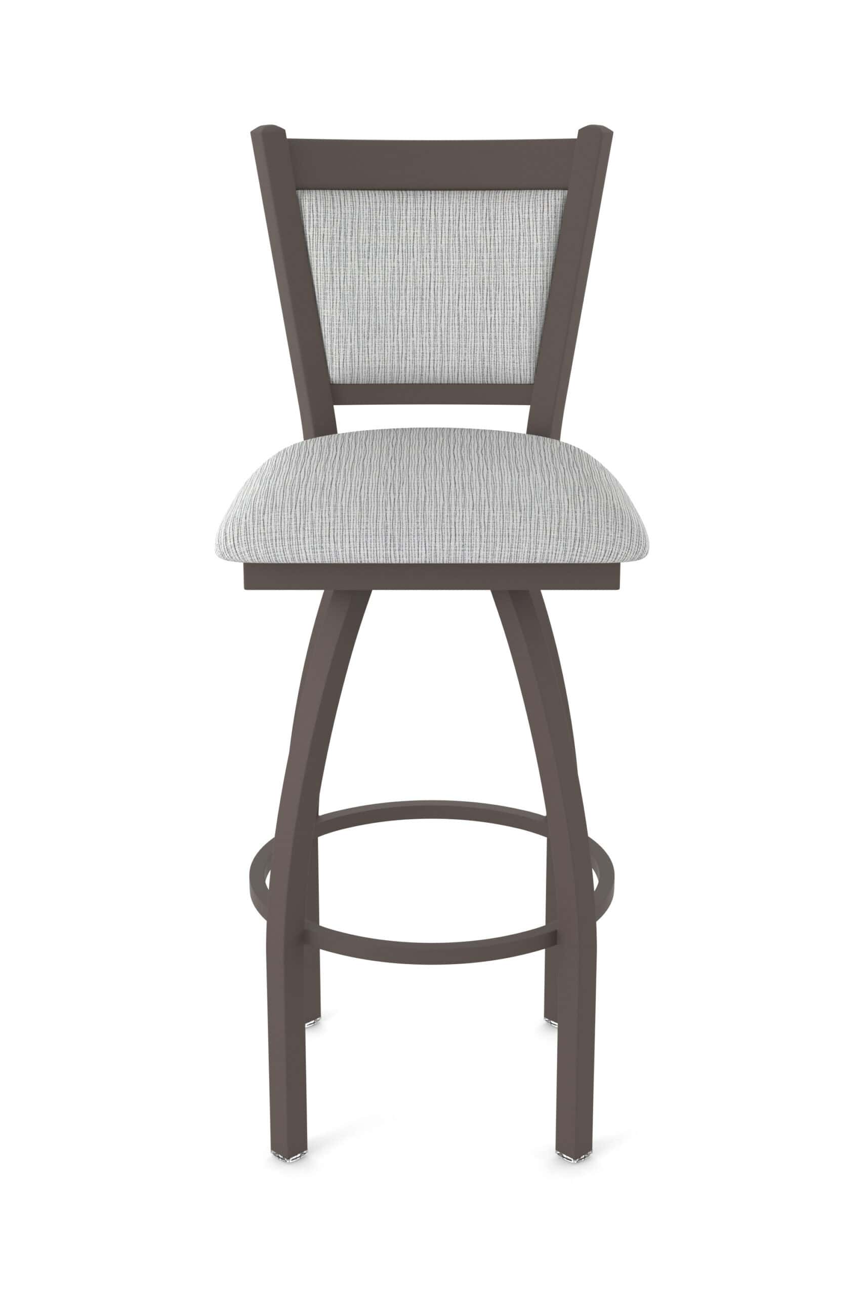 Experience superior comfort with the cushion seat constructed of 2.5-inches of high-density foam and a padded upholstered back. The bronze powder coat finish and single-ring base add a touch of elegance, while the sturdy construction guarantees long-lasting durability. Swivel smoothly into conversations with the pressure-activated swivel featuring 52 stainless steel ball bearings.