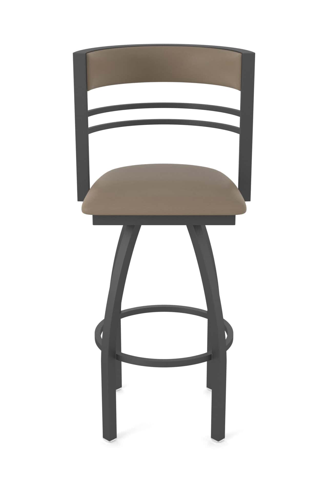 This 36-Inch Steel Swivel Bar Stool combines a distinguished design with exceptional craftsmanship and comfort. Featuring a tall, curved slat back and a canter earth cushioned seat, this stool is perfect for adding style and functionality to your bar area. The pewter finish and single-ring base provide a sleek, modern look, while the robust steel frame ensures durability and support. Enjoy smooth swiveling action and customizable upholstery options for a truly personalized seating experience.