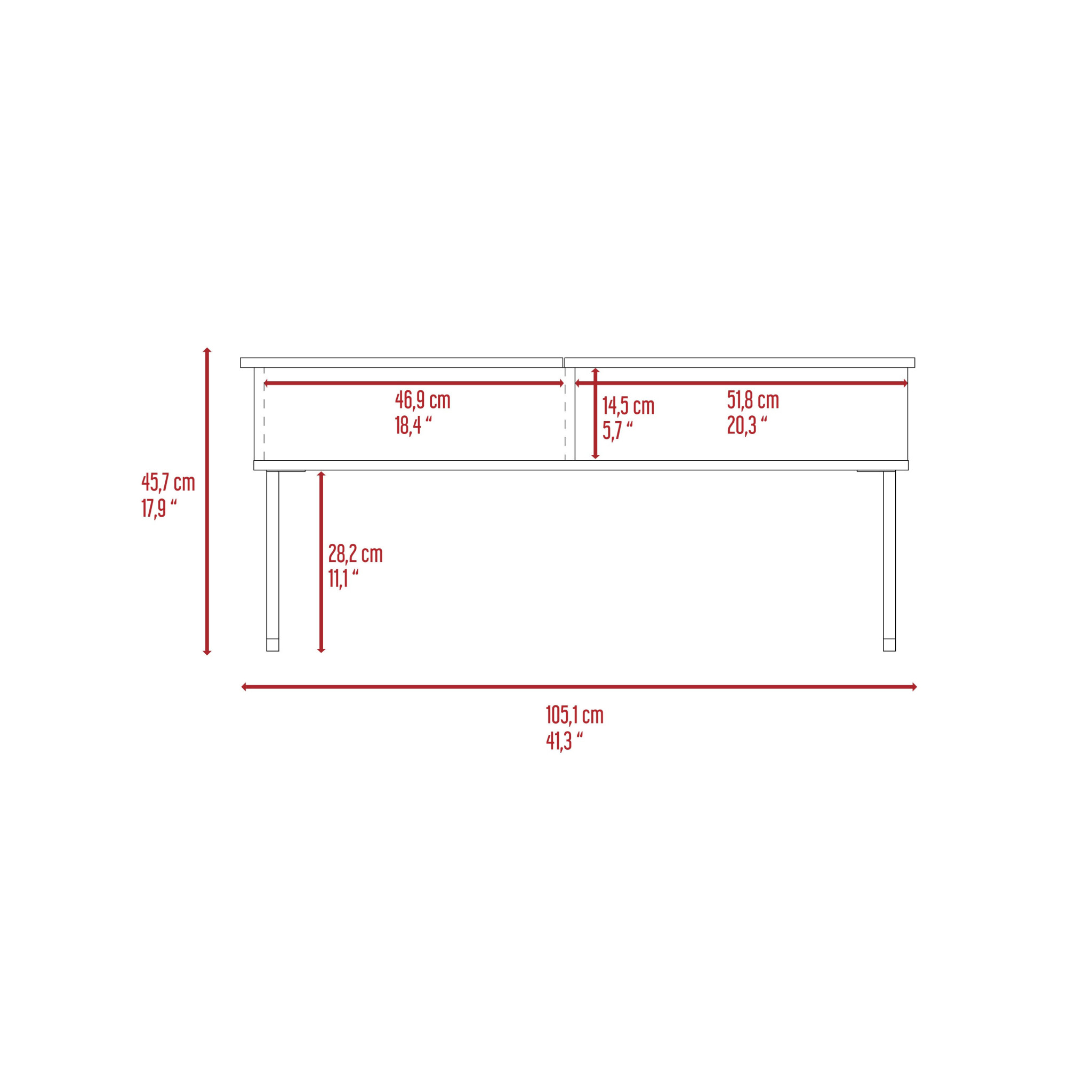 - Overall Dimensions: 25.9″ D x 17.9″ H x 41.3″ W