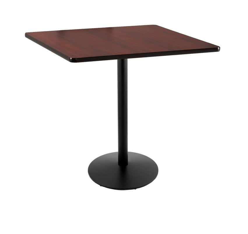 - Top: Reversible 36×36-inch square top with black laminate on one side and dark cherry (mahogany) laminate on the other