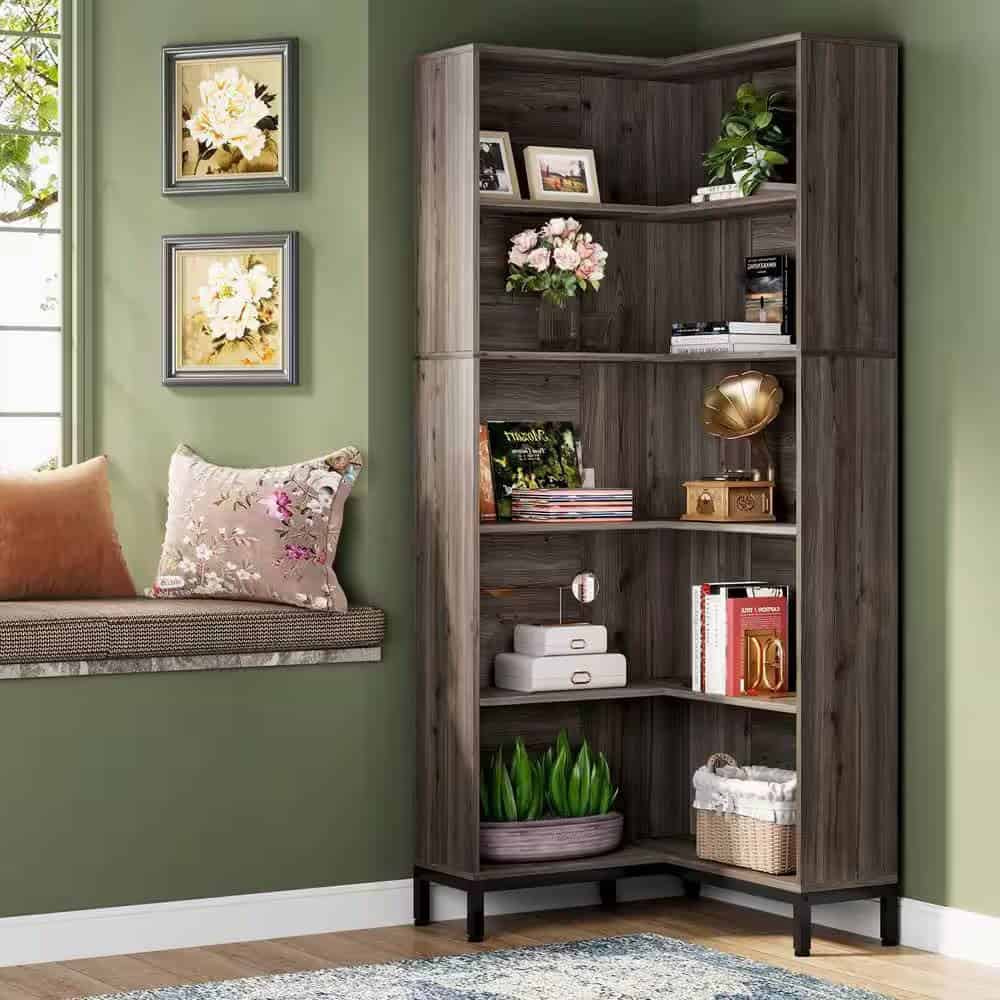 - Ample Storage Space: Features five open shelves, each with a height of 12.99 inches, to store and display books, plants, and other items.