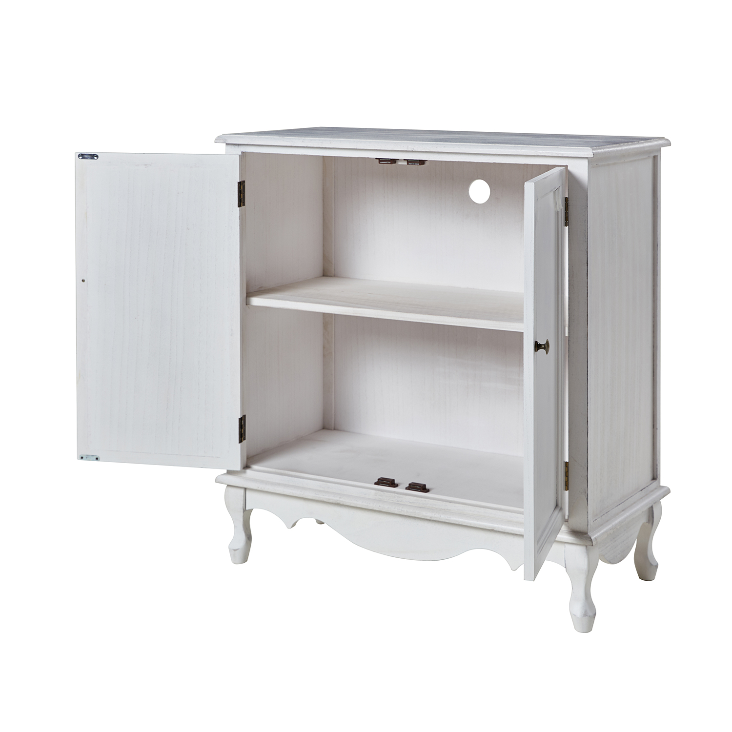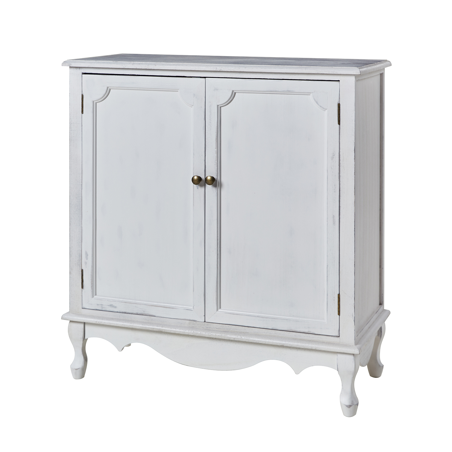 Step back in time with the Aanijah White Farmhouse 2-Door Accent Cabinet. This farmhouse-style cabinet blends traditional design with modern functionality, bringing rustic charm to any room. Meticulously carved embellishments evoke a sense of nostalgia, making it an emblem of refined taste. Adjustable legs promise flawless integration, even on uneven surfaces, while the cable management system effortlessly tames unruly wires. The exquisite metal knobs invite you to explore the ample storage within, unveiling the allure of farmhouse living at its finest.