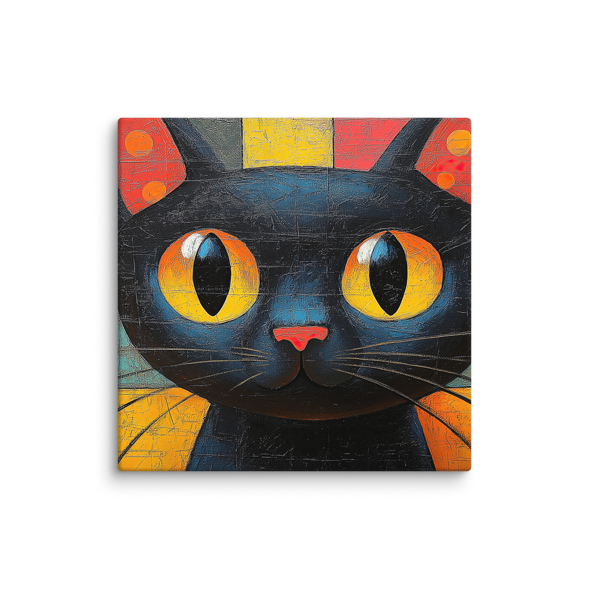 Bring a pop of creativity to your man cave with the bold and playful Abstract Black Cat Canvas Painting. This vibrant wall art merges a colorful palette with Bauhaus-inspired design, making it the perfect centerpiece for any space. Featuring a curious cat with large, captivating eyes, this piece is designed to grab attention and spark conversations.