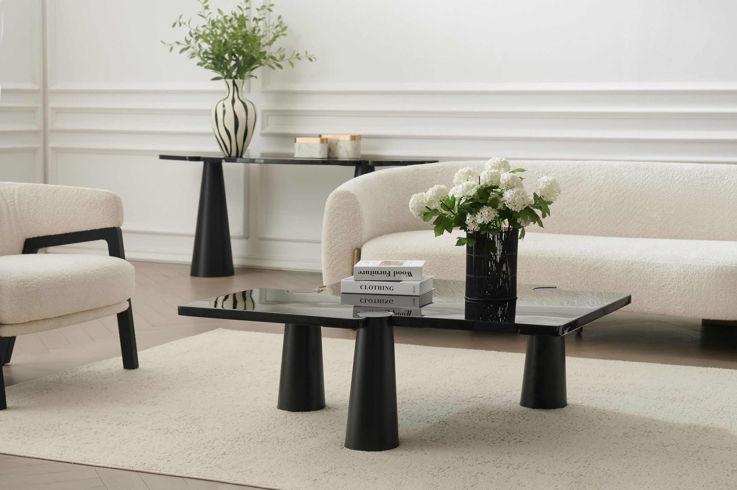 The ACYL Coffee Table is more than just a surface; it’s a statement of style. The genuine black Marquina marble offers a unique and elegant touch, while the robust steel frame ensures durability and stability. Perfect for entertaining or everyday use, this coffee table seamlessly blends form and function.