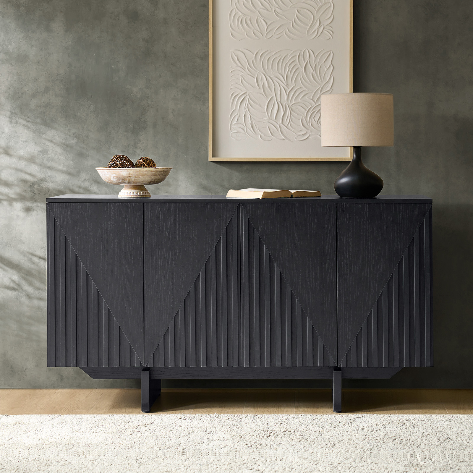 Adamo Black Embossed Modern Sideboard with Adjustable Shelves