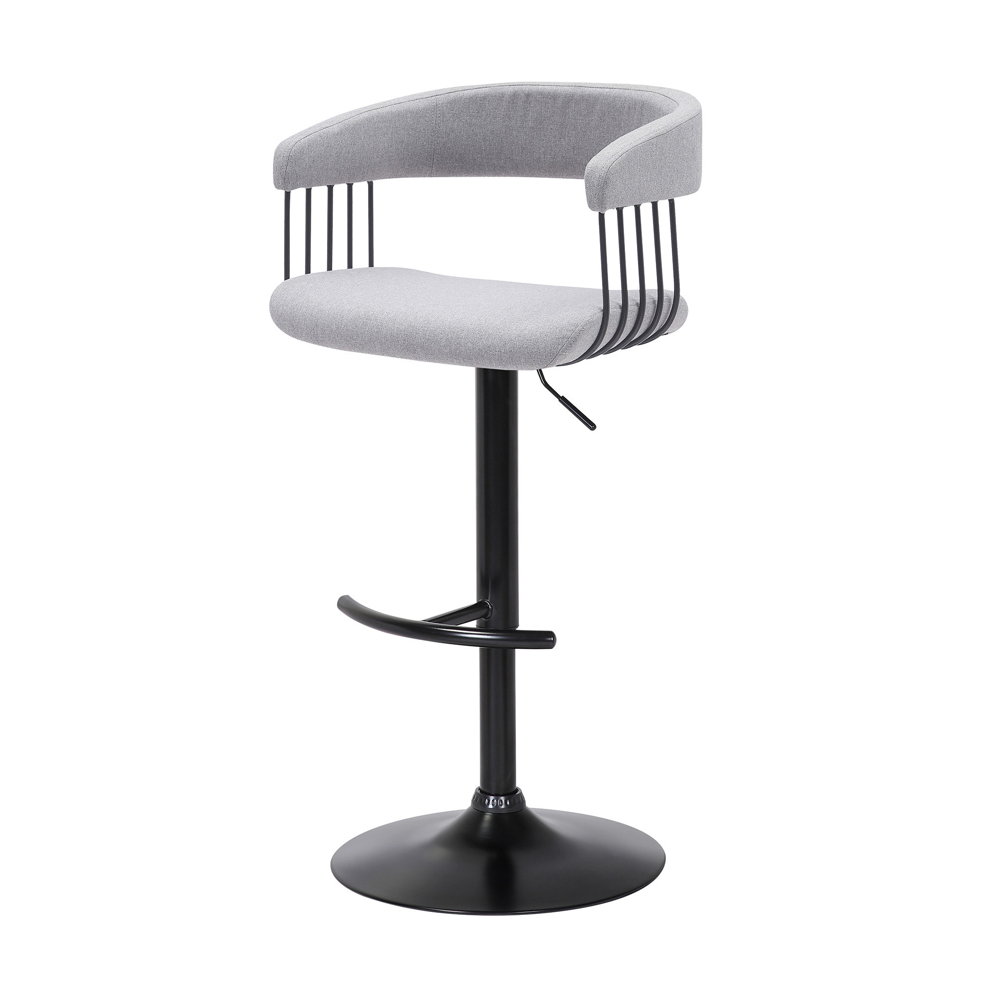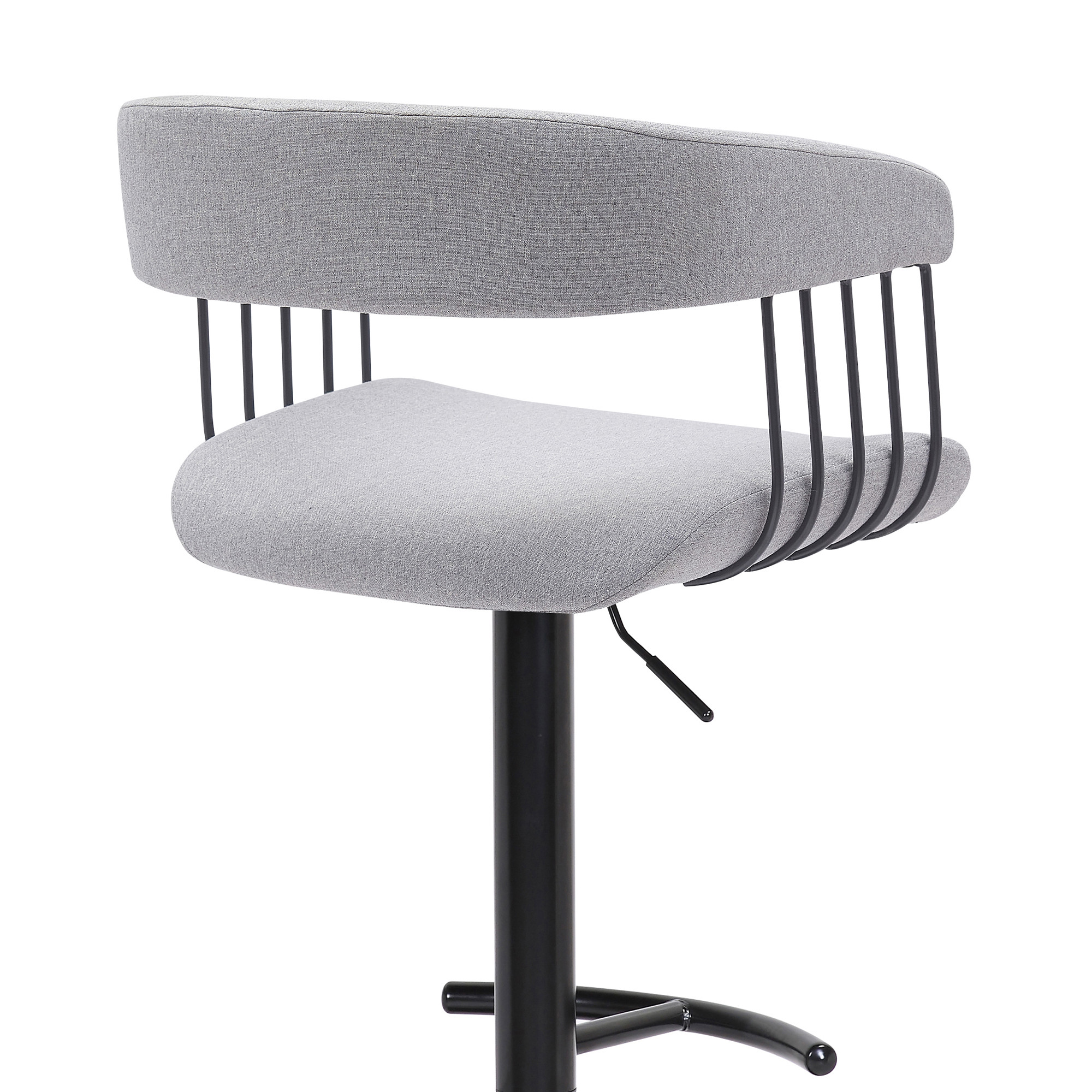 Enhance your space with the sleek and stylish Adjustable Height Light Gray and Black Swivel Bar Stool. This modern bar stool features a light gray fabric seat and a sturdy black metal base, creating a perfect balance of comfort and contemporary design. The bucket-shaped seat with a full back ensures ultimate relaxation, making it an excellent addition to your home bar or entertainment area. With its adjustable height, swivel function, armrests, and footrest, this stool is both functional and visually appealing, designed to meet your seating needs while complementing your decor.