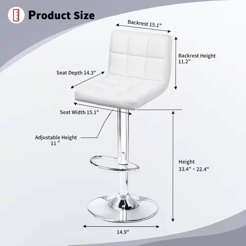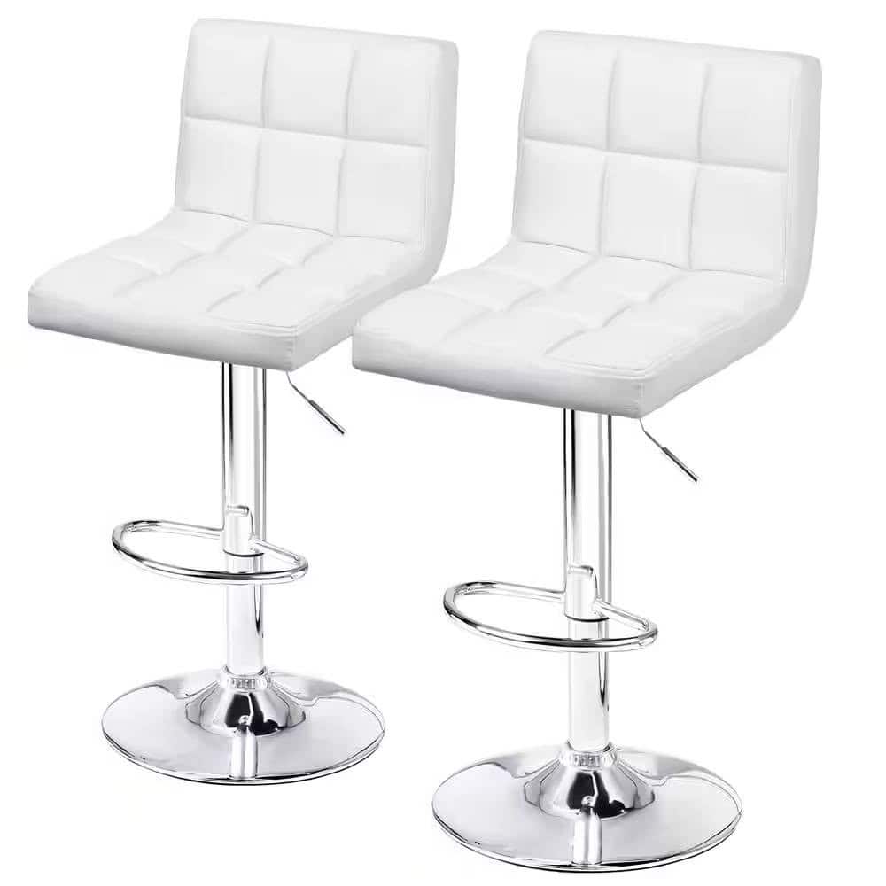 The Adjustable White Faux Leather Swivel Barstools with Low Back (Set of 2) offer a perfect combination of style, comfort, and functionality. Designed to elevate your space, these barstools feature a modern aesthetic with a sleek white faux leather finish and a durable metal frame. The adjustable height and 360° swivel functionality ensure maximum comfort and versatility, making them ideal for home bars, kitchen counters, or office spaces. The ergonomic low backrest provides lumbar support while the padded foam cushion offers sofa-like comfort, making these stools perfect for extended seating. The stylish silver base adds a touch of elegance, enhancing the décor of any room.