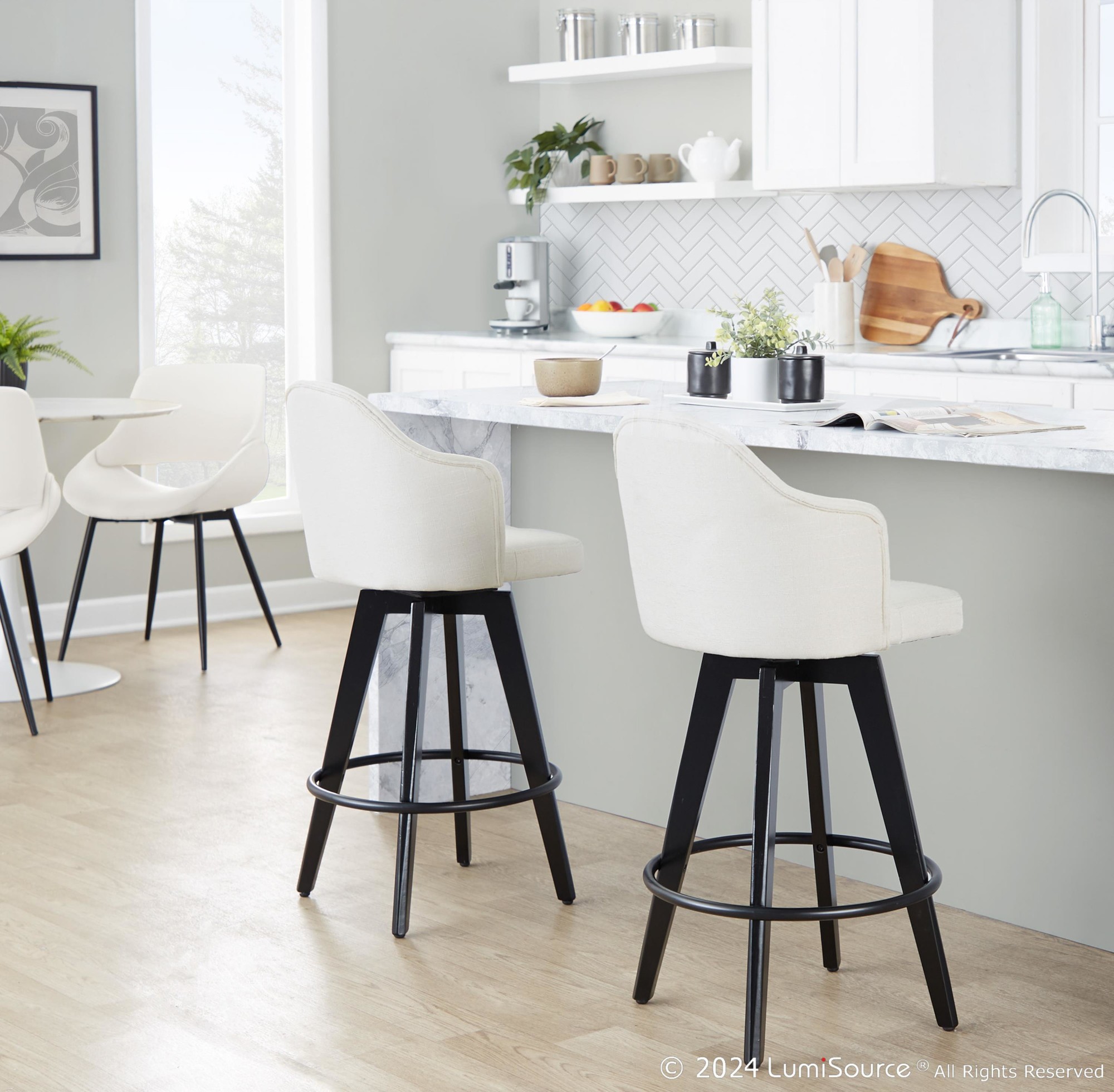 - Fixed counter height with 360-degree swivel