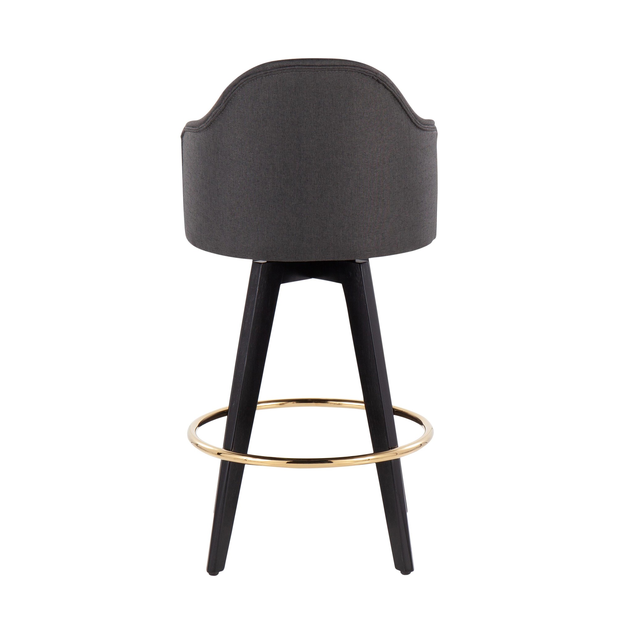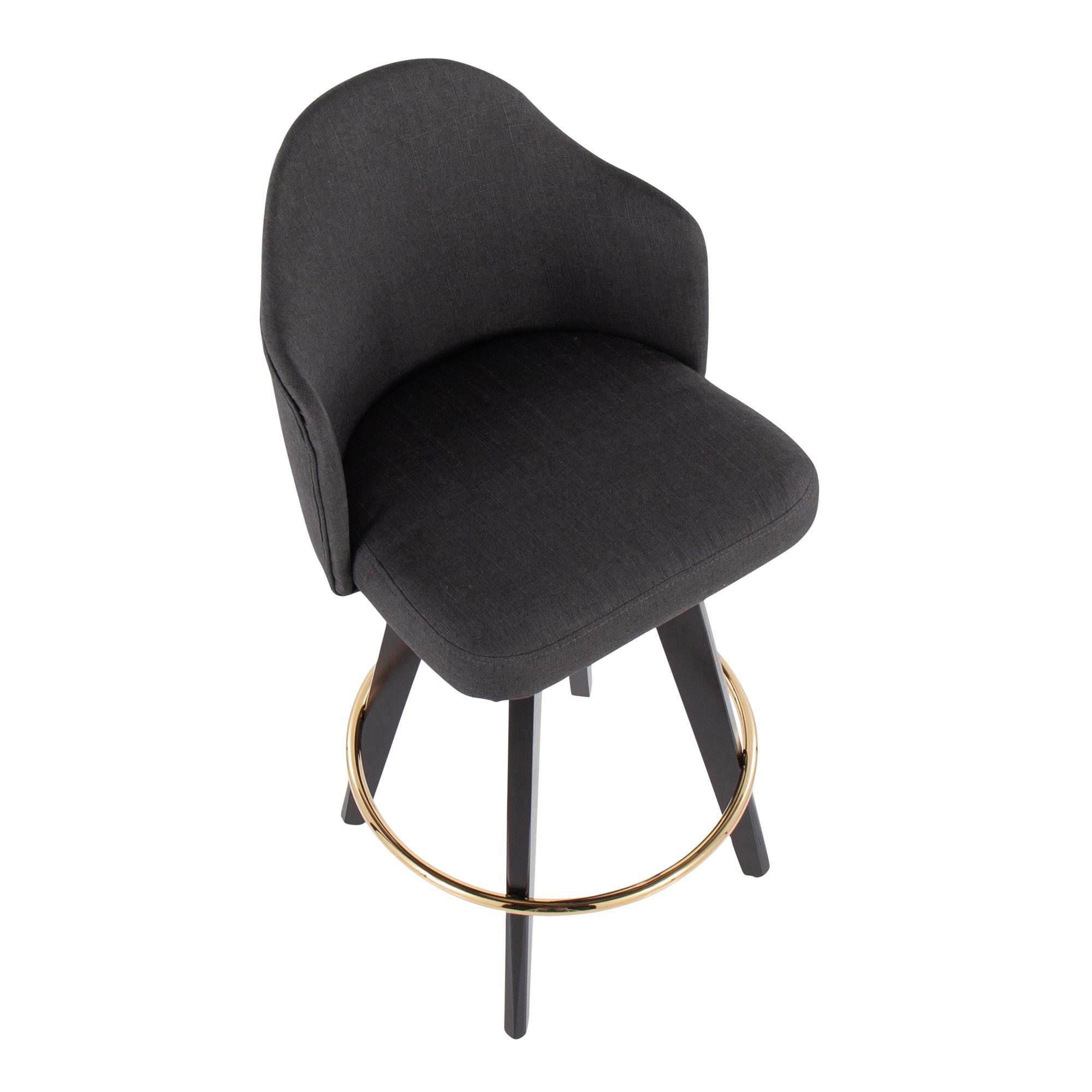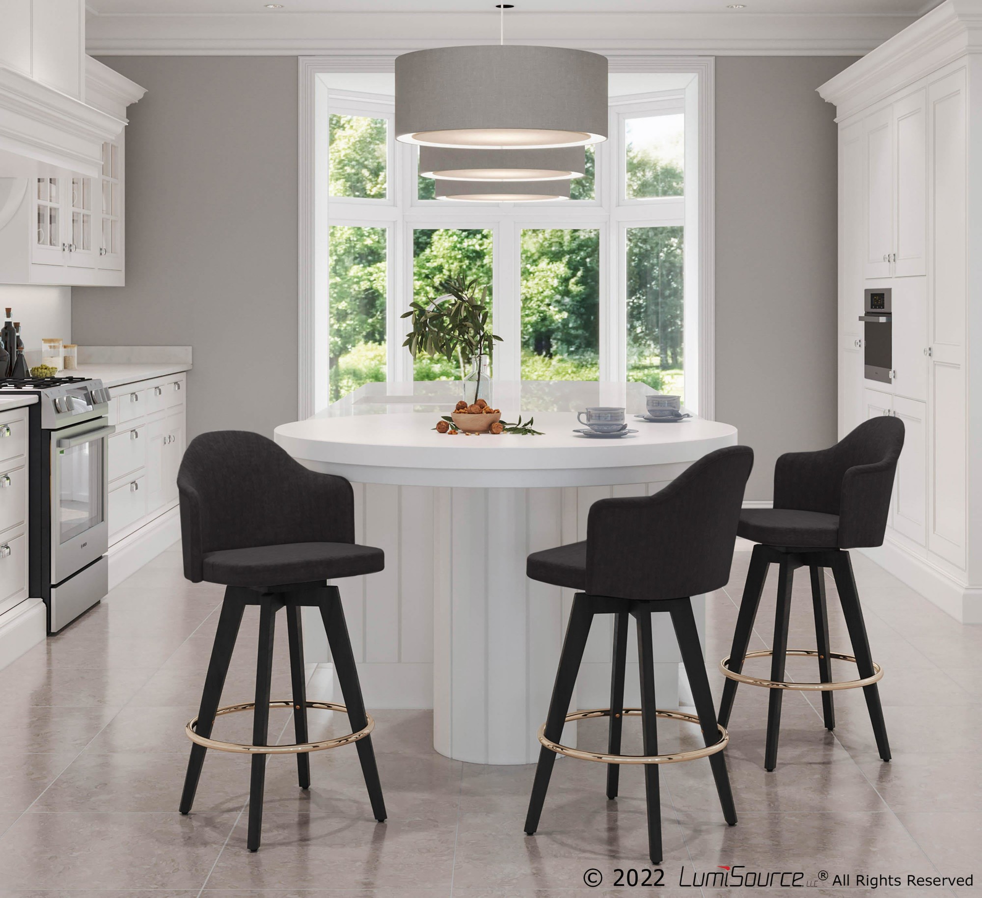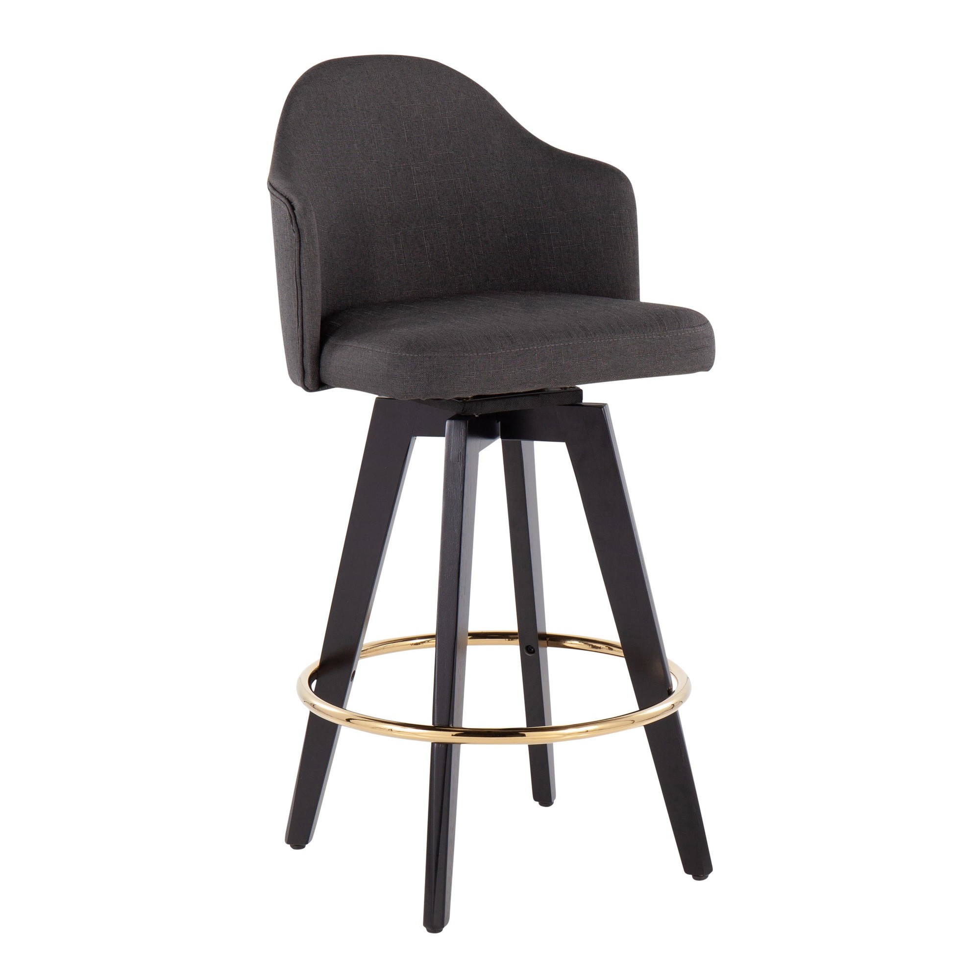 Add style and comfort to your man cave bar with the Ahoy Charcoal Fabric Contemporary Counter Stools. This set of two counter stools features a sleek, contemporary design. The charcoal fabric upholstery offers a modern look and comfortable seating. Enjoy the 360-degree swivel and the sturdy black wood legs, complete with a stylish round gold footrest. Each stool has a seat height of 26 inches and can hold up to 250 lbs. Assembly is required. These stools are perfect for indoor use.