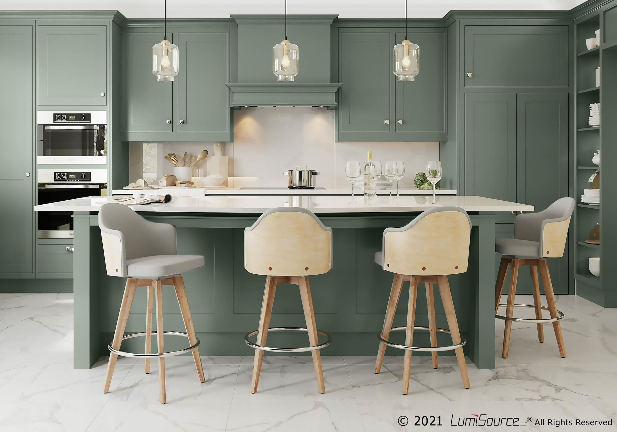 The Ahoy Counter Stool brings contemporary charm to your space with its sturdy construction and appealing design. Enjoy sleek fabric upholstery beautifully accented by a bamboo back and stylish bamboo legs. These stools are perfect for adding a touch of modern elegance to your counter or bar area. The 360-degree swivel seat provides ultimate comfort and convenience, making these stools a fantastic addition to any home.