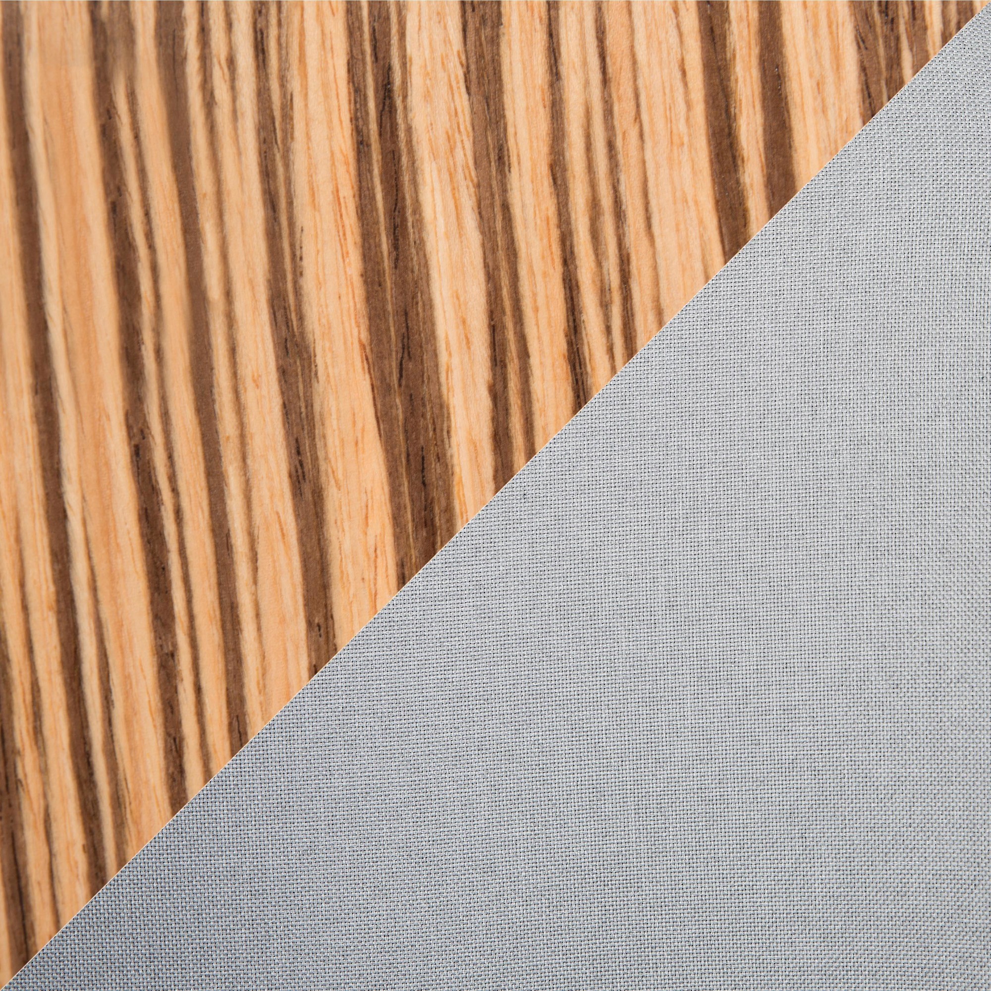 - Color: Zebra Wood, Chrome, Light Grey Fabric