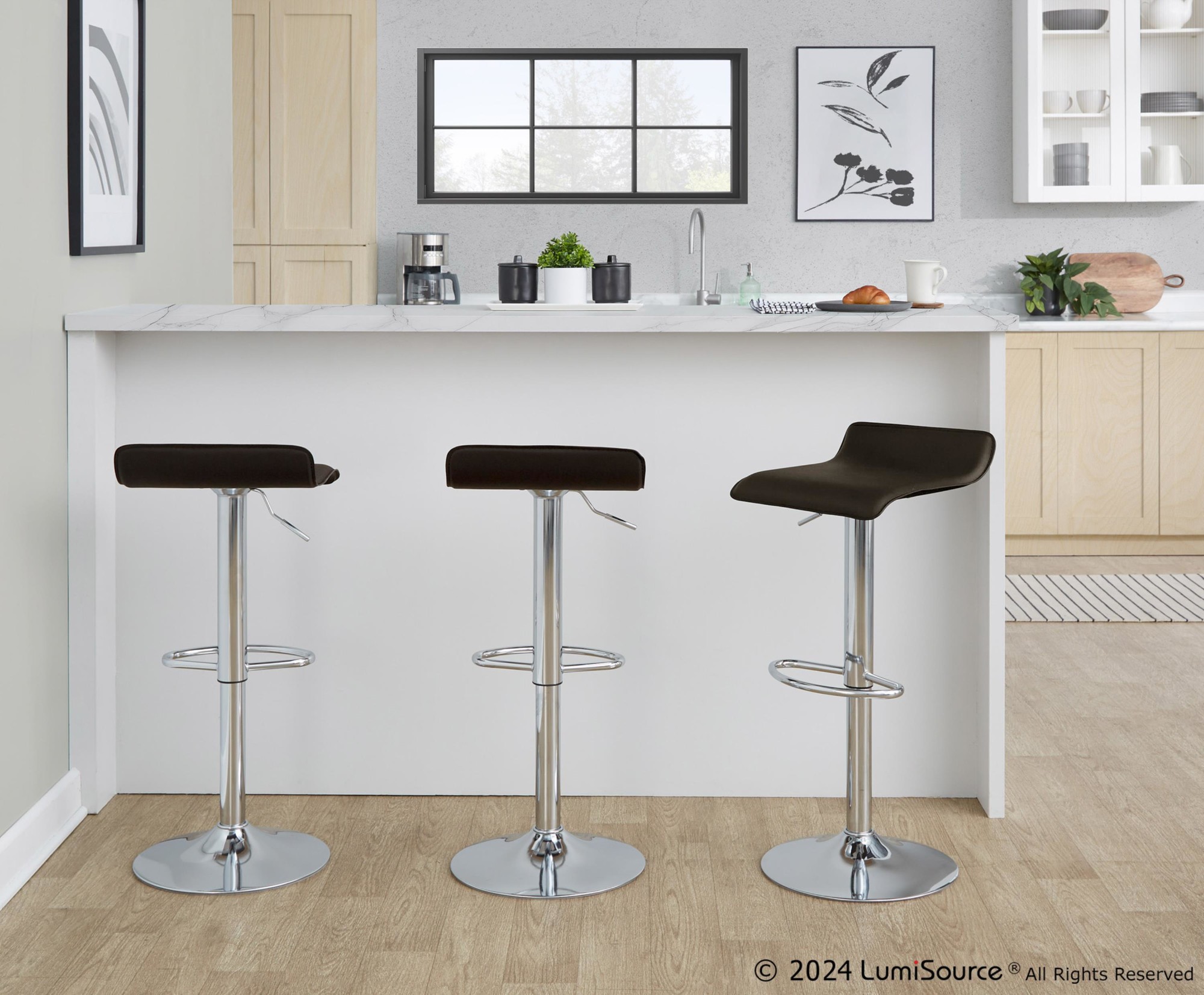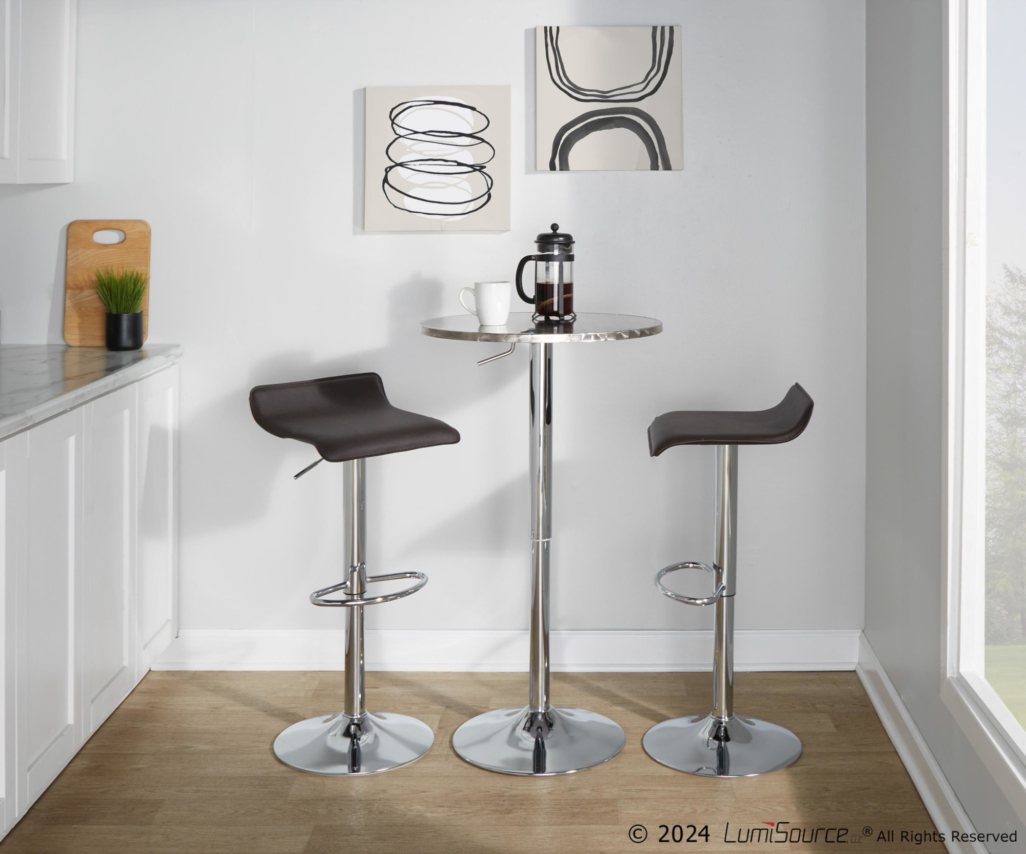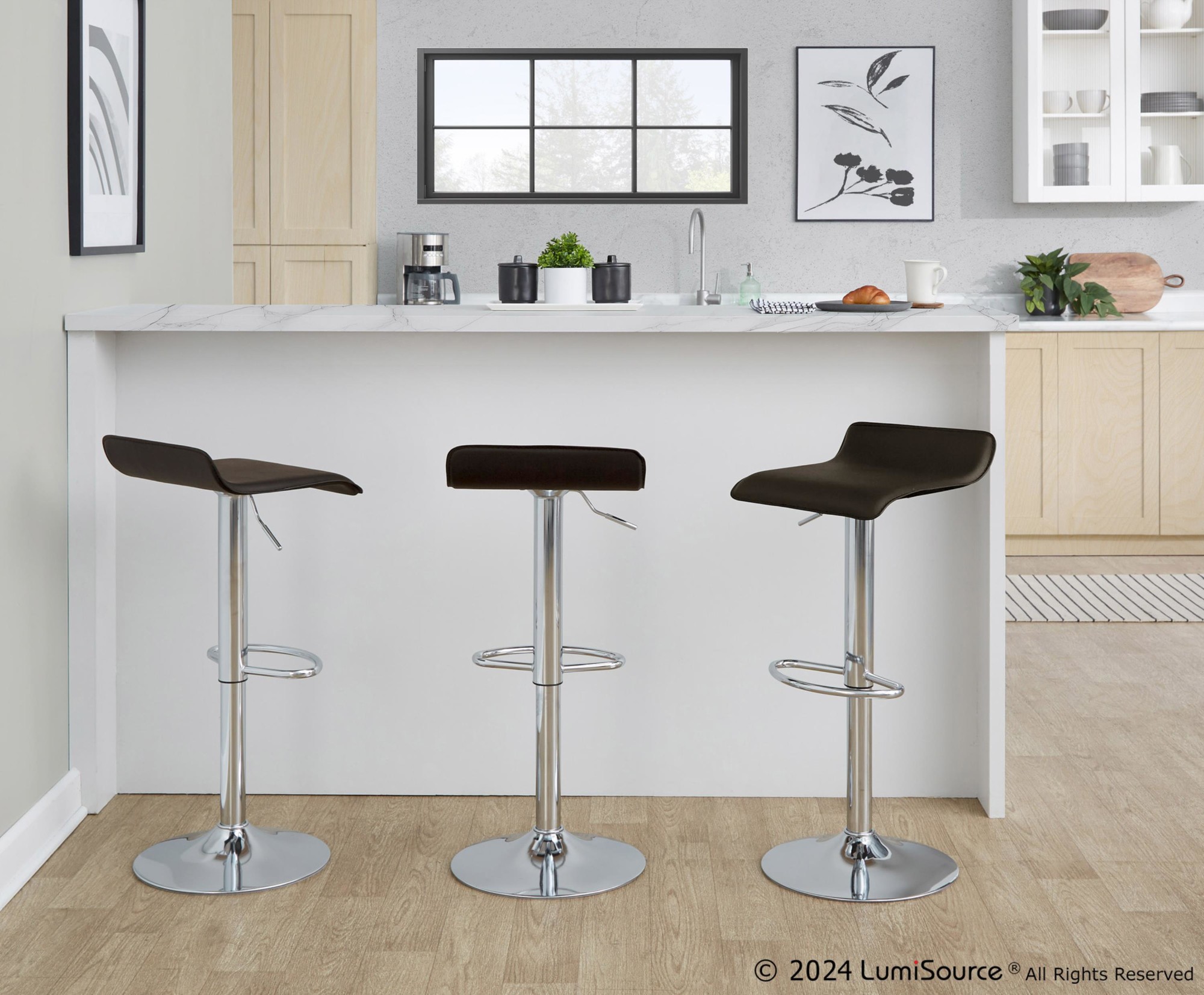 The Ale Brown Adjustable Contemporary Bar Stools offer a welcoming allure with their gently waved, upholstered leatherette seats. These stools aren’t just about looks; they’re about finding your perfect comfort zone. The adjustable, polished chrome pole, base, and footrest allow you to personalize your seating experience. With these bar stools, you get sophisticated style and unbeatable value, making them the perfect addition to your space!