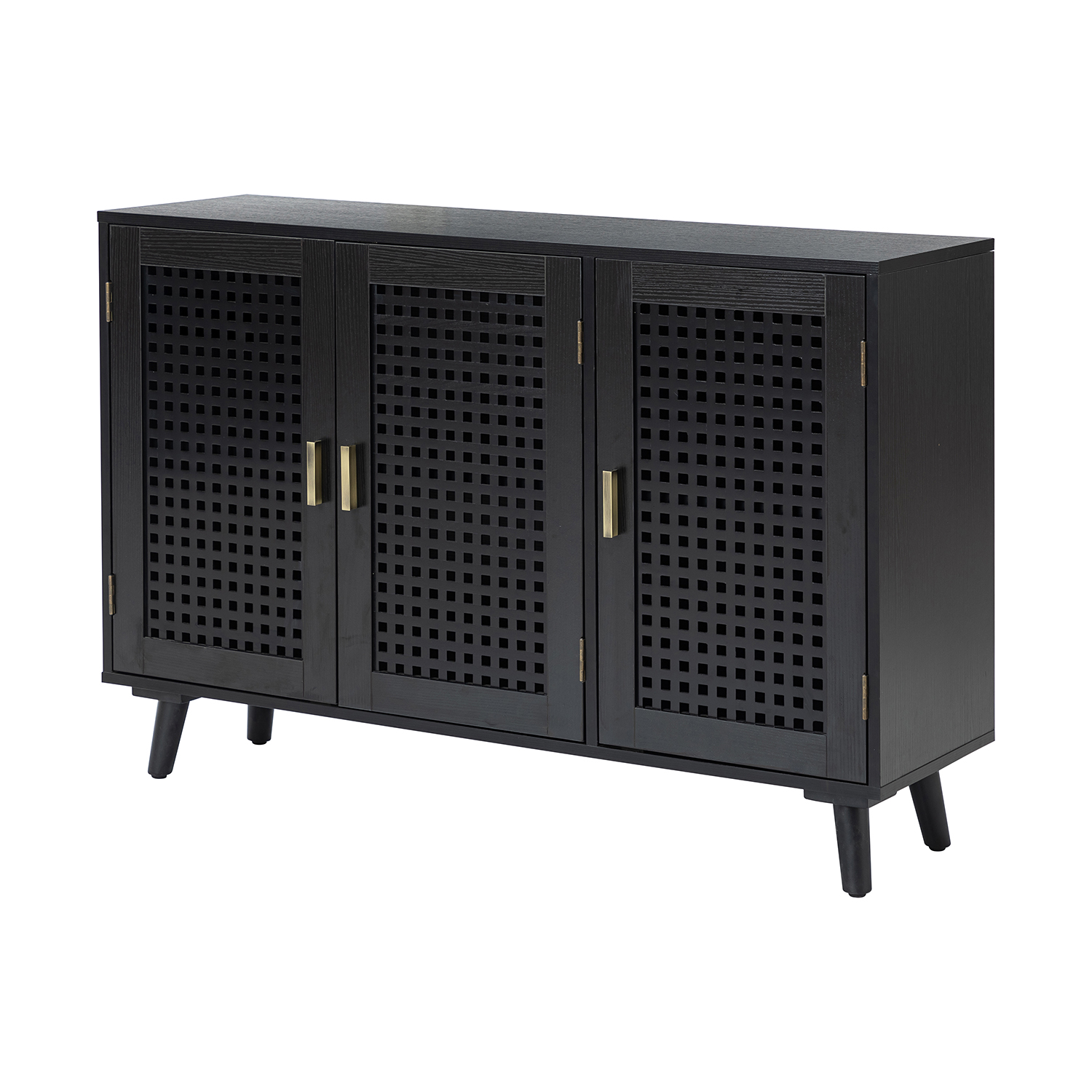 The Alexis Black 3-Door Lattice Beech Wood Accent Sideboard Cabinet adds an elegant backdrop to any living or working space. This alluring accent sideboard is designed to complement your existing décor while providing ample storage for a variety of items, effectively keeping clutter under control.