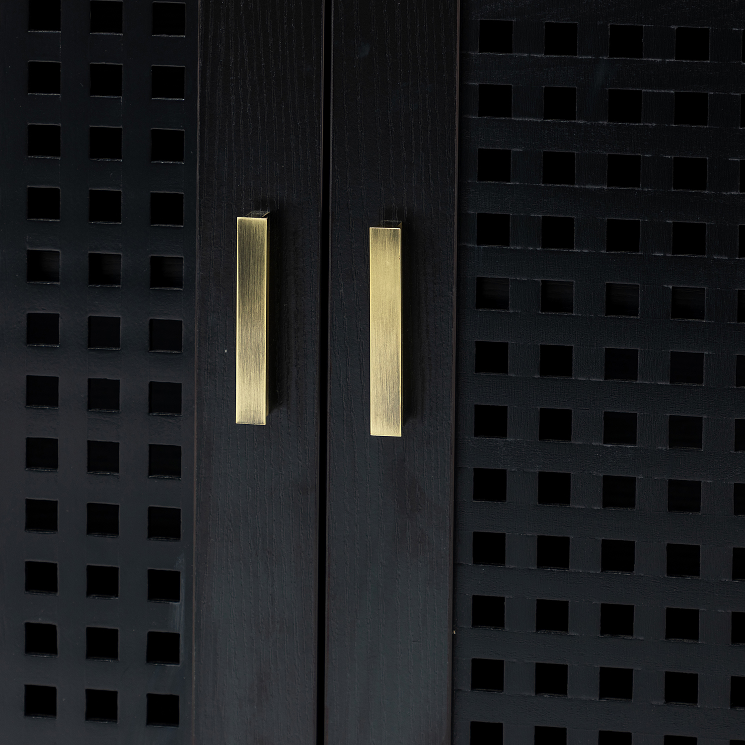 - Storage: Three lattice doors open to four interior shelves.