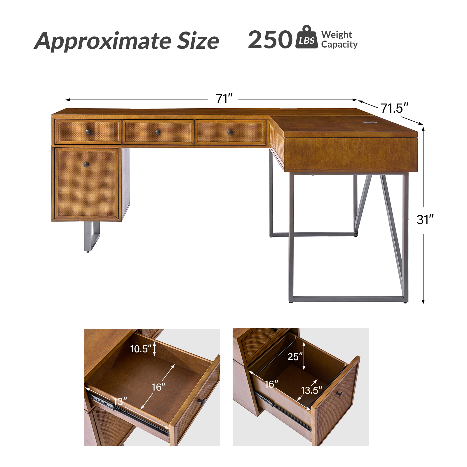 - Stylish Storage: Keep your documents organized with the rattan-finished file drawer, equipped with full-extension ball-bearing slides.