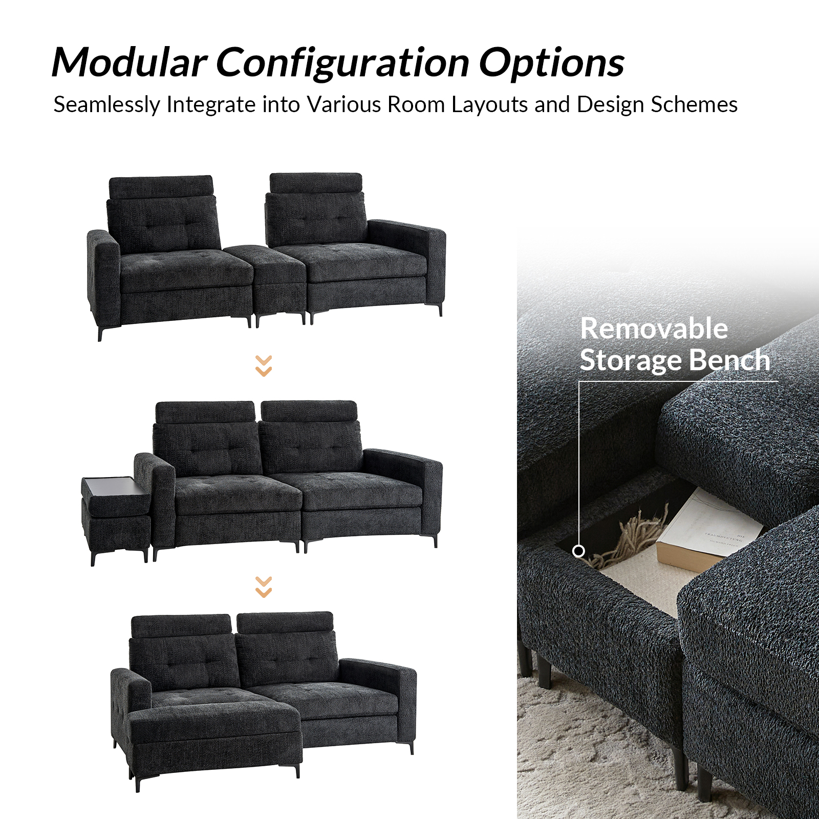 This modern sectional sofa seamlessly blends style and functionality, making it the perfect addition to any living space. Featuring sleek button-tufted upholstery for a touch of contemporary charm, this sofa also offers ample storage and adjustable seating depth for personalized comfort. Its modular design allows for versatile configuration, adapting to any room layout. Sink into plush cushions and enjoy a cozy lounging experience elevated by sturdy metal legs.