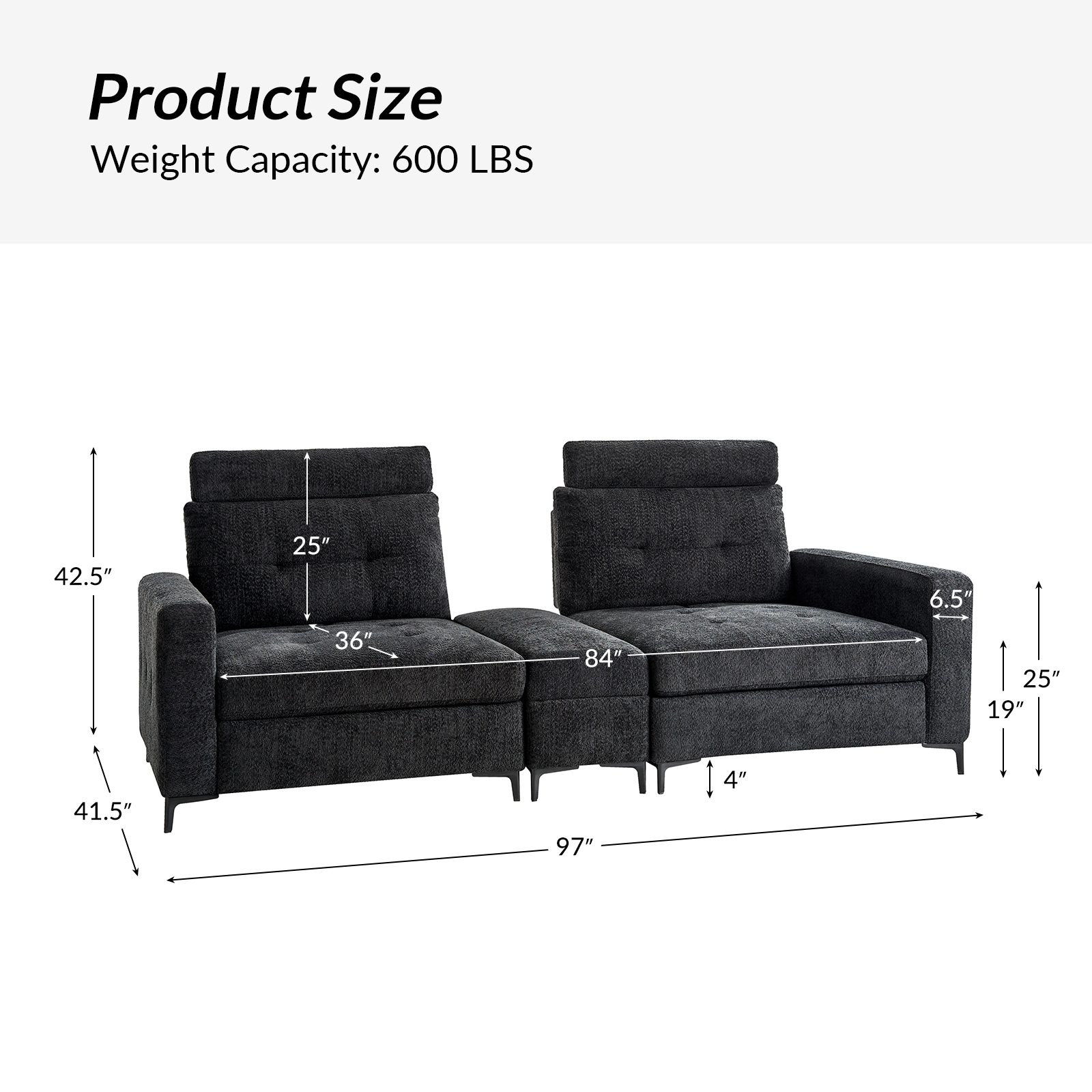 - Dimensions (WxDxH): 97 x 41.5 x 42.5 inches