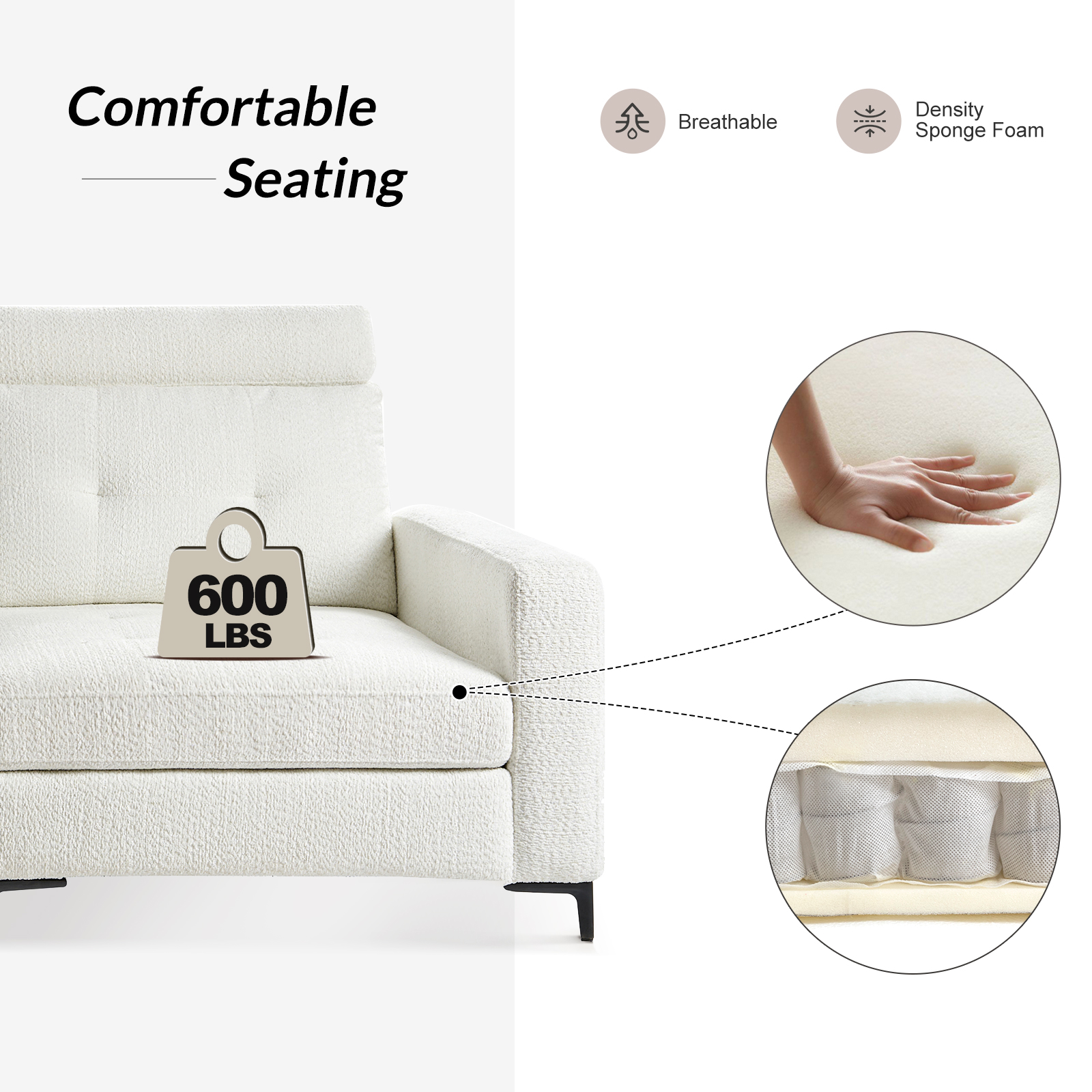 - Sturdy Metal Legs: Sleek metal legs provide stability and durability while contributing to the sofa’s modern aesthetic.