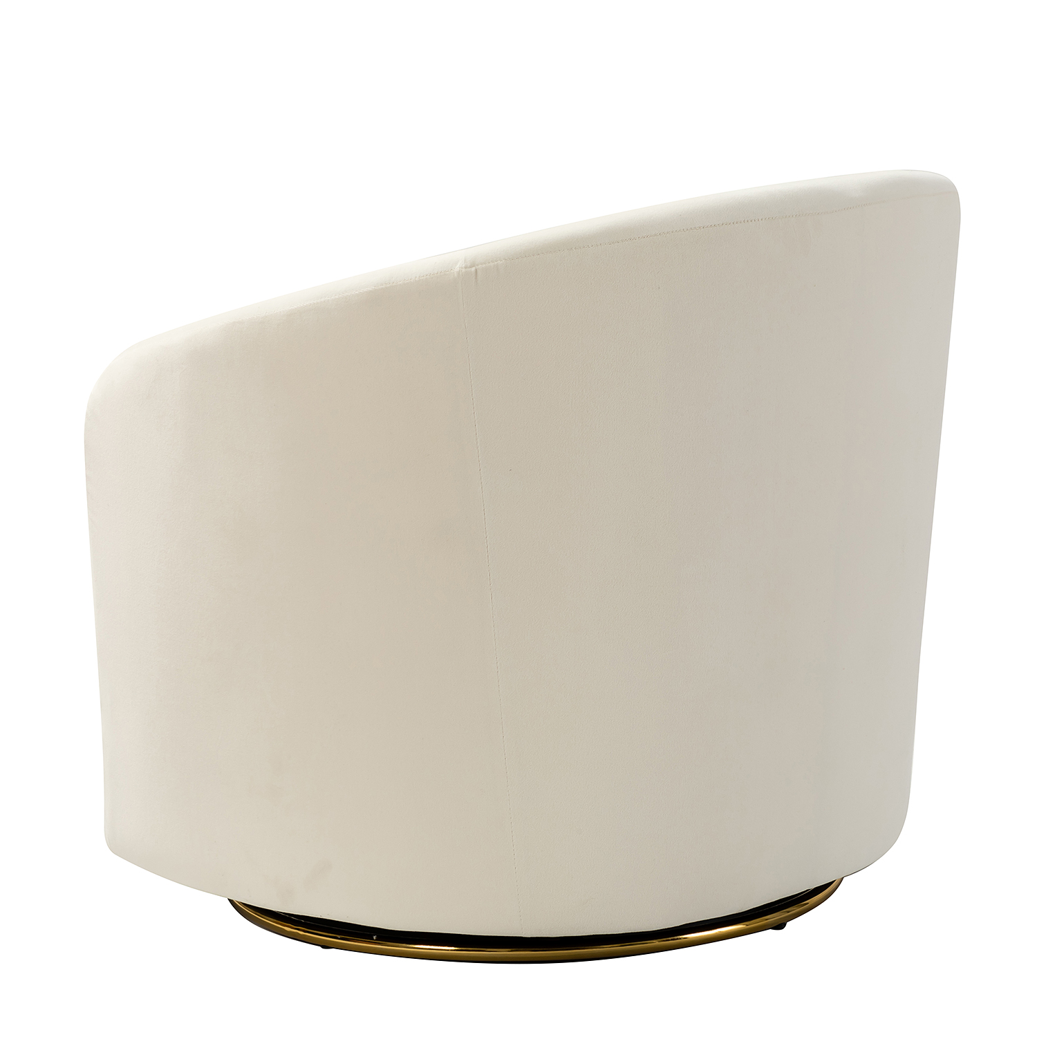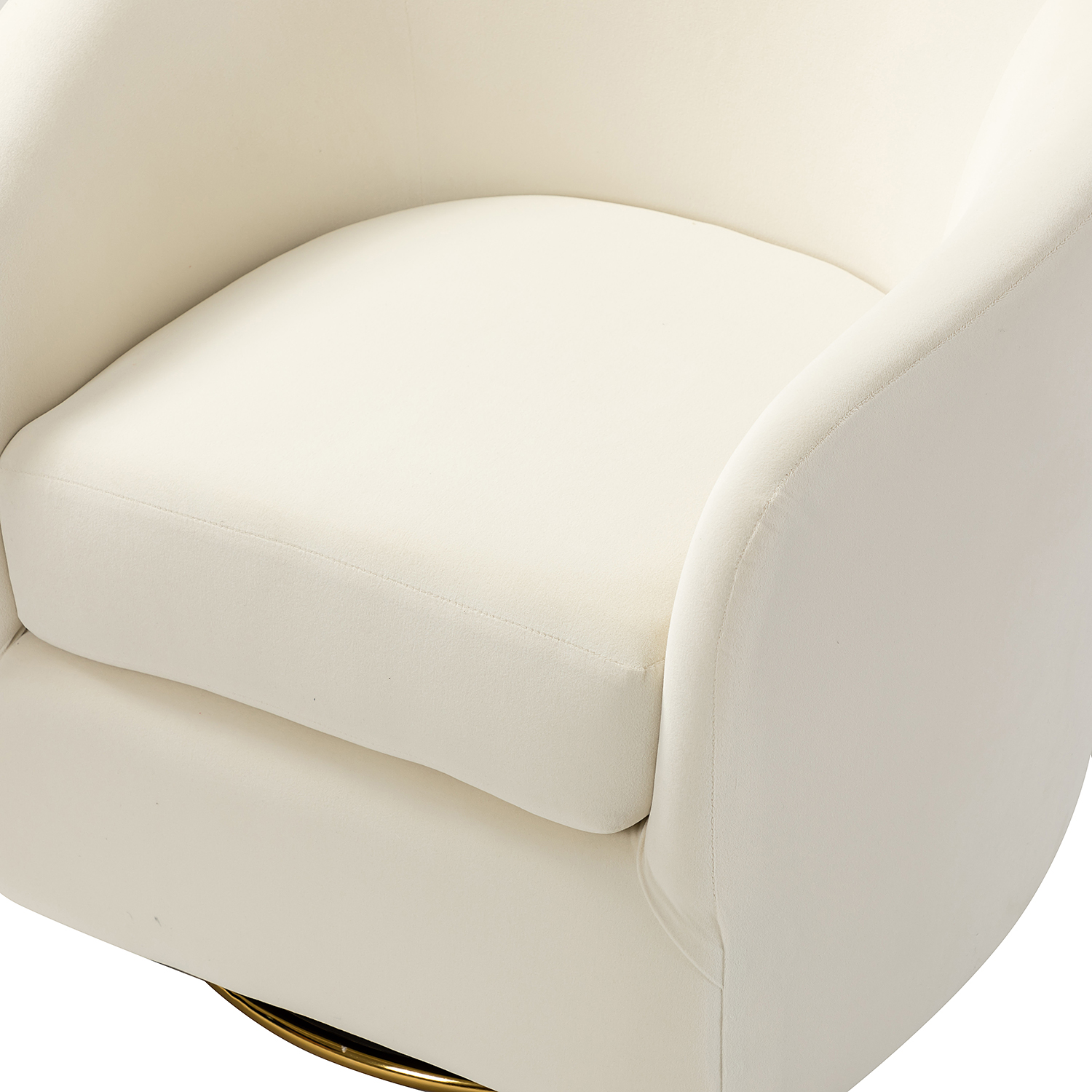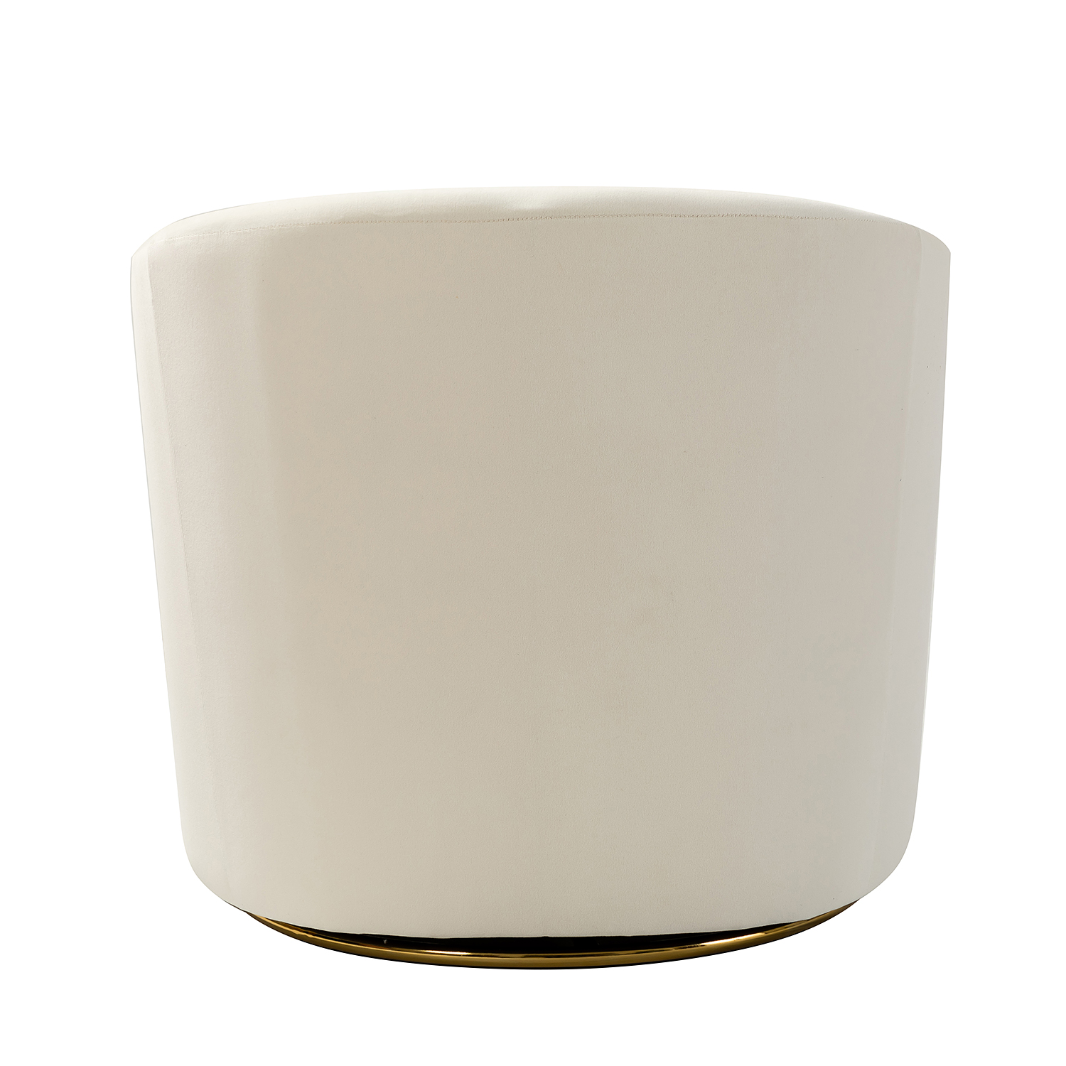 The Amarante Ivory Velvet Gold Swivel Accent Chair is a versatile addition to any space. Whether you need a cozy spot for reading or a convenient place to prepare your outfit for the day, this chair is the perfect choice. Its streamlined barrel silhouette and gold metal swivel base blend classic and contemporary styles, making it a stylish and functional piece for your home. The chair’s sturdy construction and comfortable velvet upholstery provide both durability and a luxurious feel.