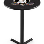 Elevate your bar, game room, or man cave with this high-quality 36-inch pub table. Designed for durability and style, this table features a vibrant, full-color laminate top that resists scratches and ensures longevity. Its commercial-grade construction, including a sturdy cast iron base plate and steel column, guarantees stability and functionality. The sleek black wrinkle powder-coated finish adds a touch of sophistication, while adjustable feet ensure stability on any floor surface. Easy to assemble and clean, this table is a practical and stylish addition to any setting.