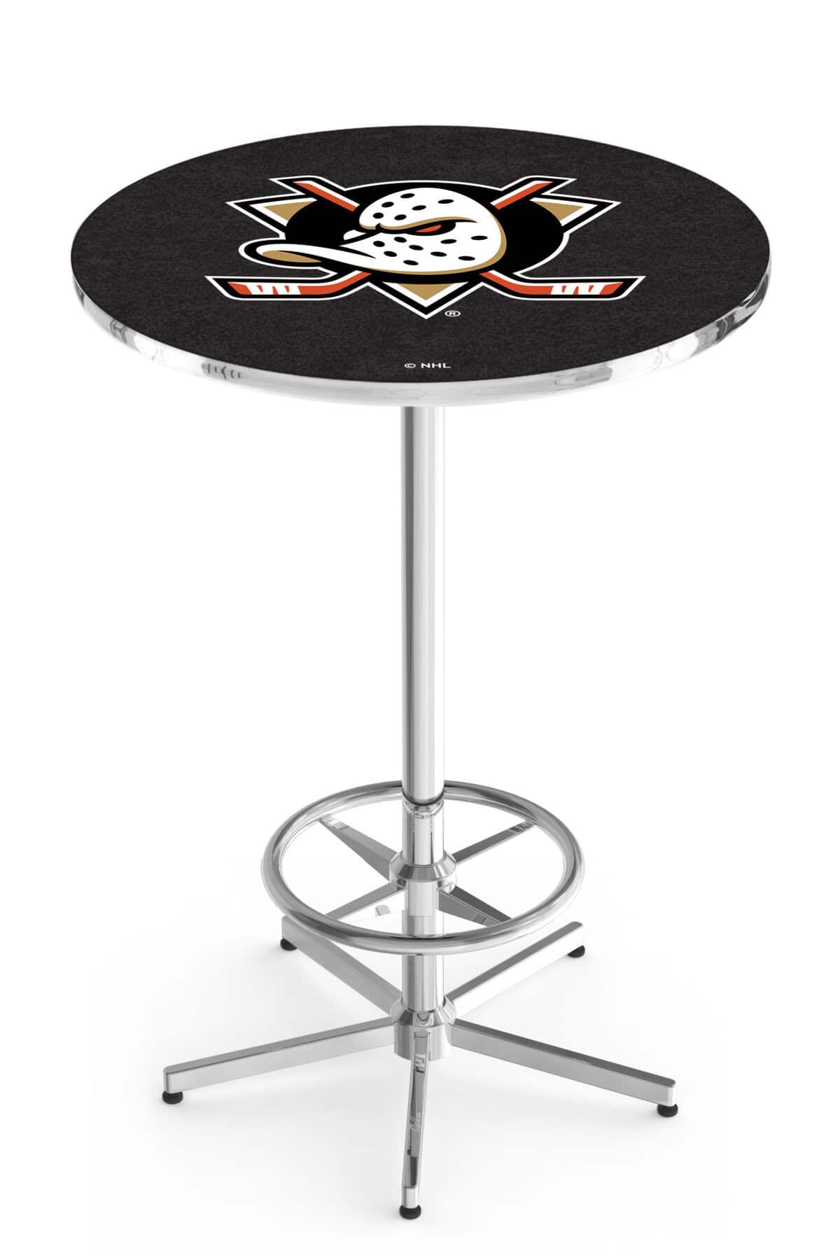 Enhance your bar, game room, or man cave with this stylish and durable pub table. Designed for the ultimate sports fan, this 42-inch tall table features a 36-inch top with a vibrant, full-color design that resists scratches and ensures lasting quality. The sturdy star base is made from triple chrome-plated steel, offering exceptional stability and a sleek appearance. Easy to assemble and equipped with adjustable floor glides, this table is perfect for any room, even on uneven floors.