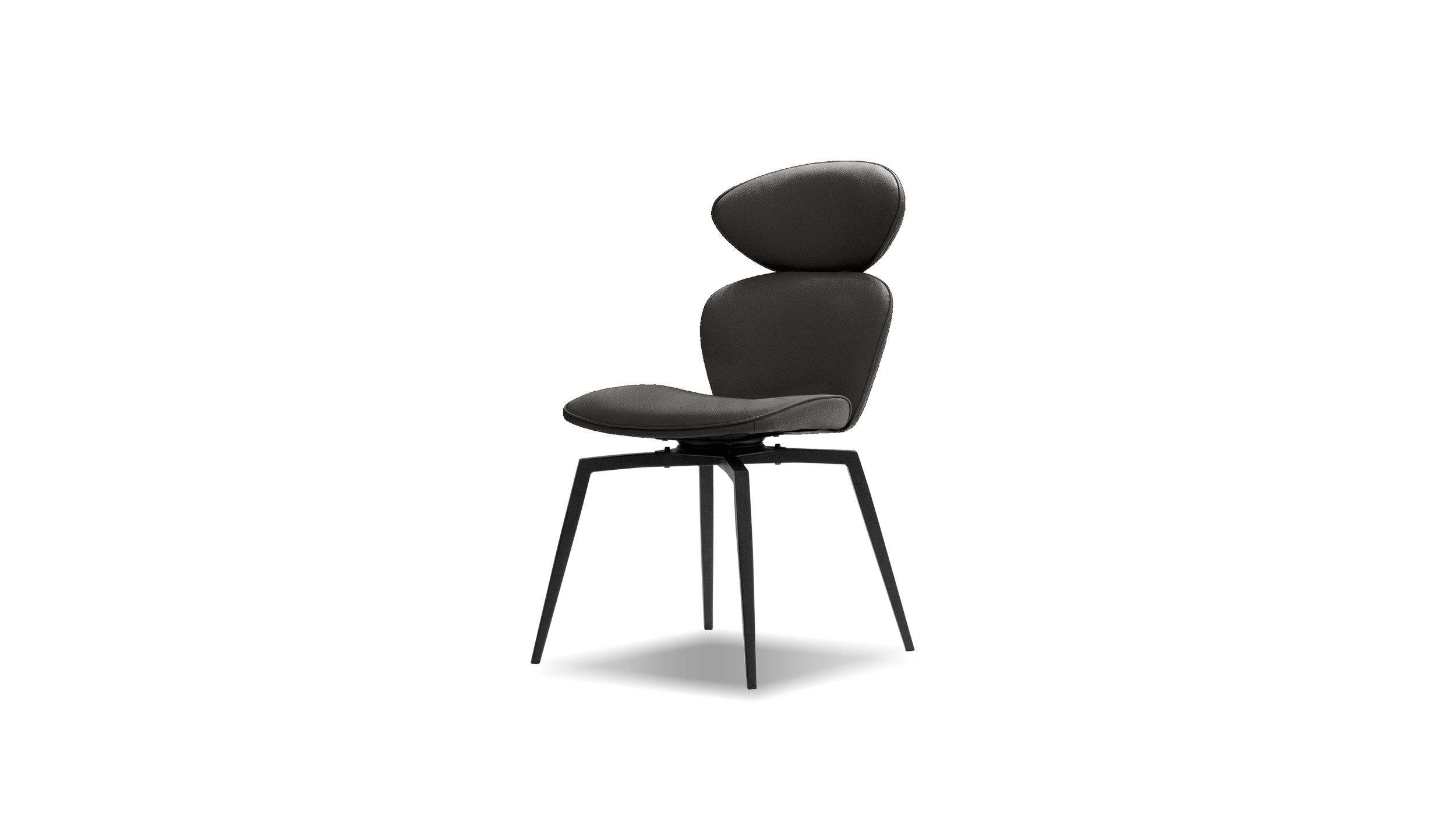The ANTLER chair combines modern aesthetics with exceptional comfort. Upholstered in easily maintained pebble grain leatherette, it features a convenient memory return swivel and a sturdy black steel base. This design ensures the chair returns to its original position after use.