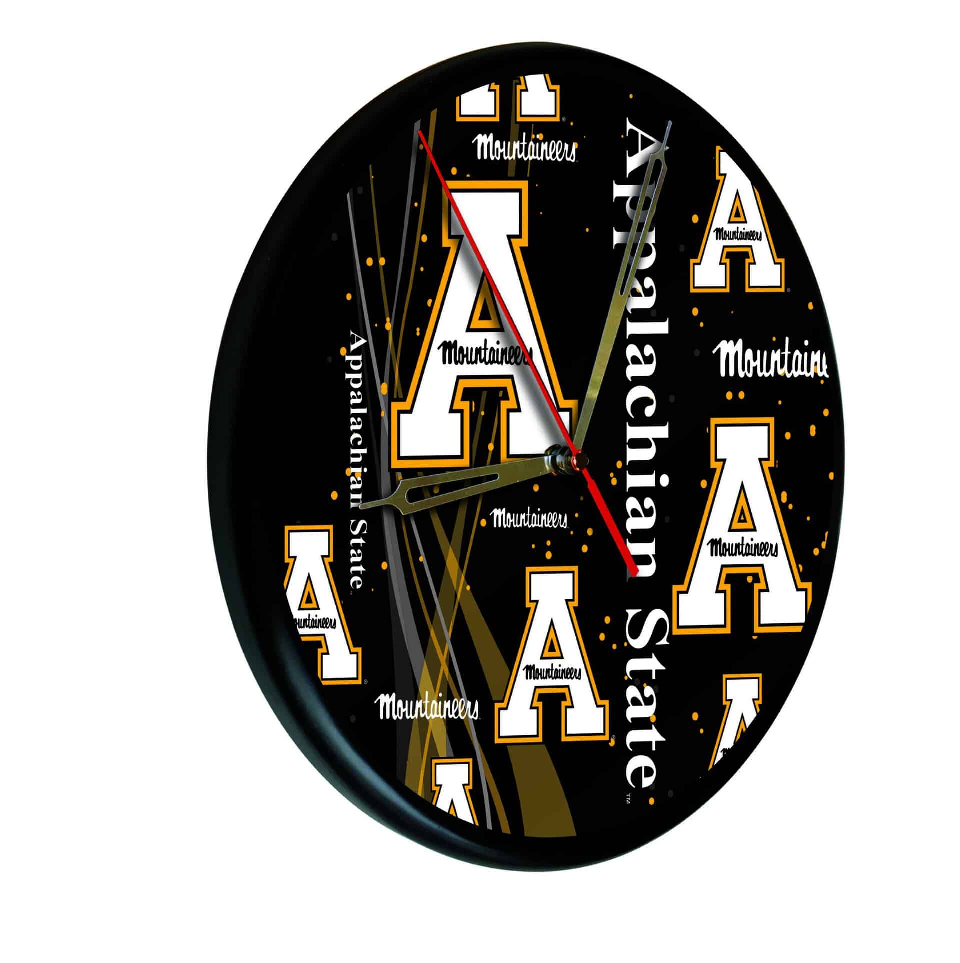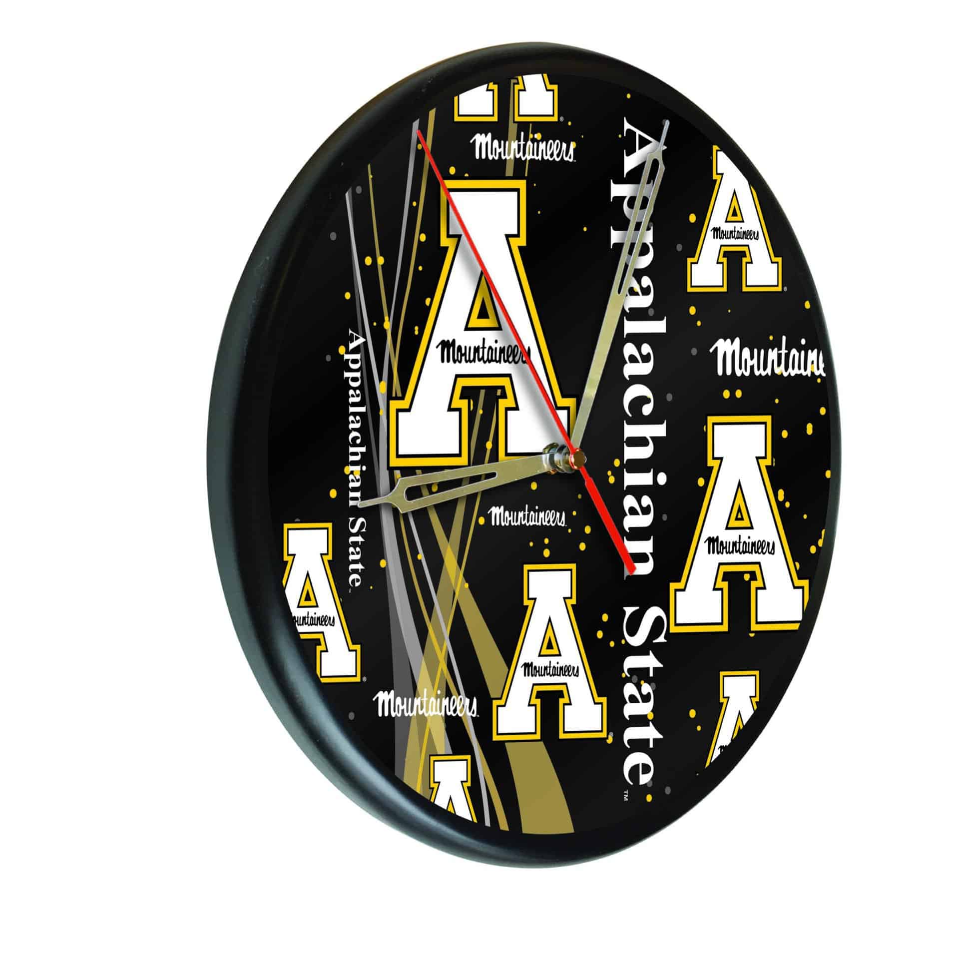 The Appalachian State University 13-Inch Solid Wood Clock in Black is a stylish way to showcase your school pride while keeping track of time. This officially licensed clock features high-quality graphics printed with UV inks that resist fading over time. With its accurate quartz movement powered by a single AA battery, you can rely on this clock for precise timekeeping. The recessed keyhole hanger ensures a flat and clean display on your wall, making it an ideal gift for graduates, sports fans, or for personal use.