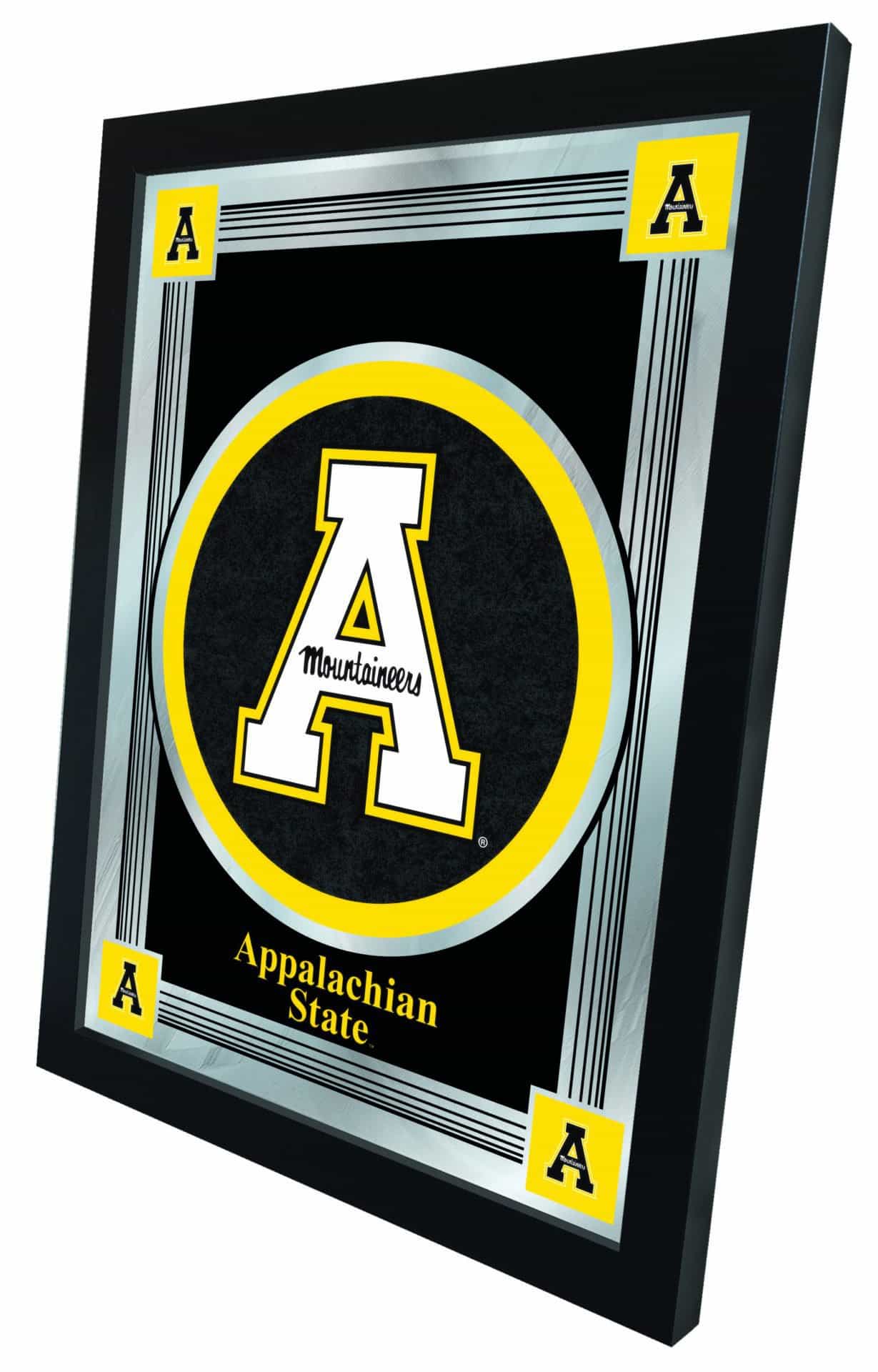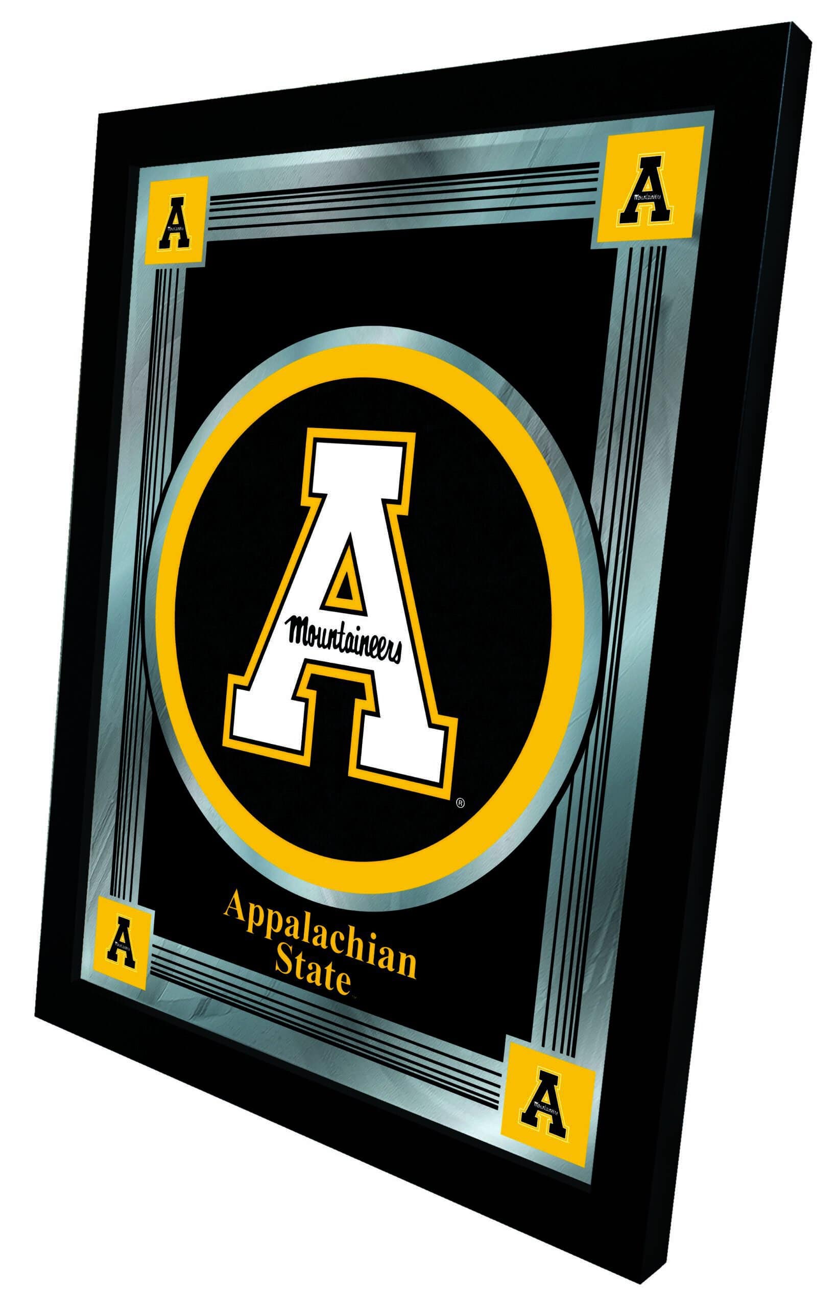Show your school pride with this Official Licensed Logo Mirror. Featuring a simple yet elegant design, the vibrant colors burst through the 1/8″ thick glass, accentuated by mirrored edges. The mirror is framed with a sleek black 1 1/4″ wrapped wood frame and includes saw-tooth hangers for easy installation. Measuring 17 inches in width and 22 inches in height, this mirror is a perfect addition to your office, garage, or any room in your home. Whether as a gift for a recent graduate, a sports superfan, or a personal treat, this mirror embodies quality craftsmanship and style.