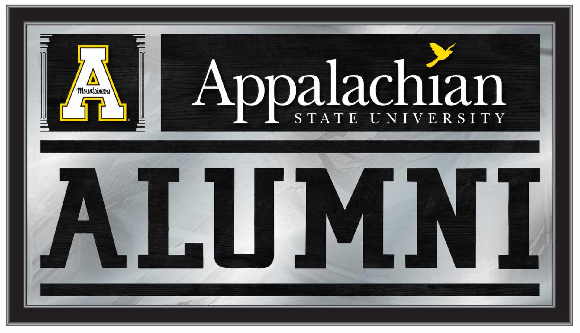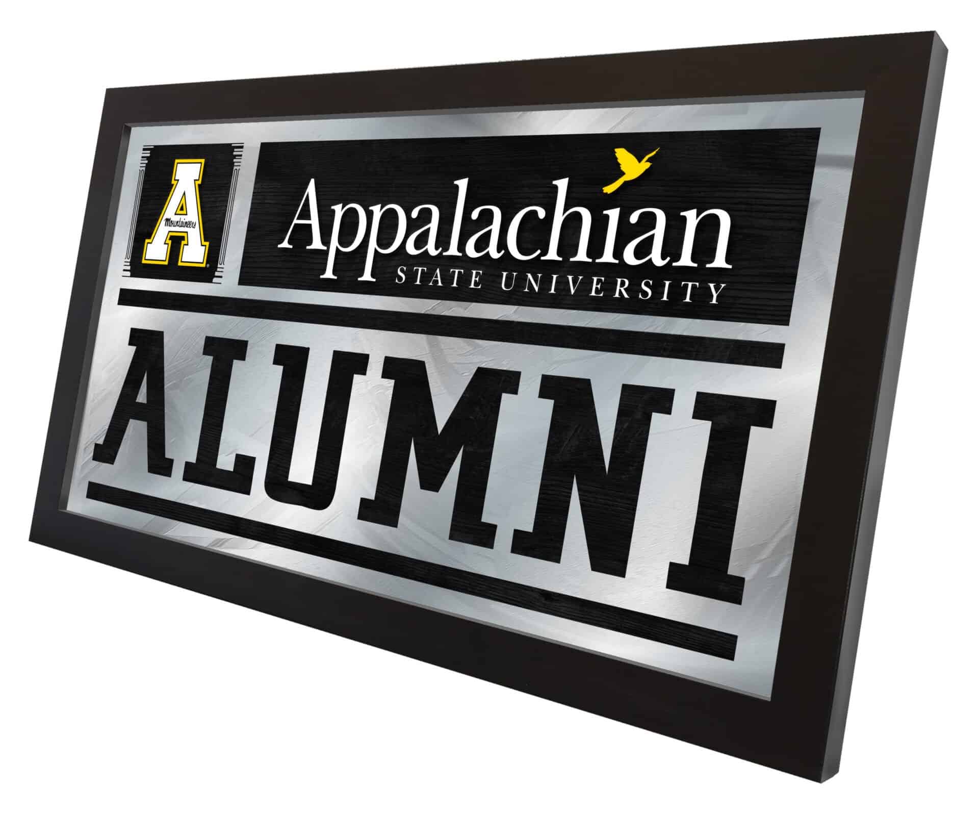Show your school pride with the Appalachian State University 26×15 Alumni Wall Mirror. With its simple yet elegant design, your school colors shine through the 1/8″ thick glass and are beautifully highlighted by mirrored accents. Framed in a sleek black, 1 1/4″ wrapped wood frame, this mirror is perfect for your office, garage, or any room in your home. Whether you’re buying it as a gift for a recent graduate or treating yourself, you can take pride in owning a high-quality mirror.