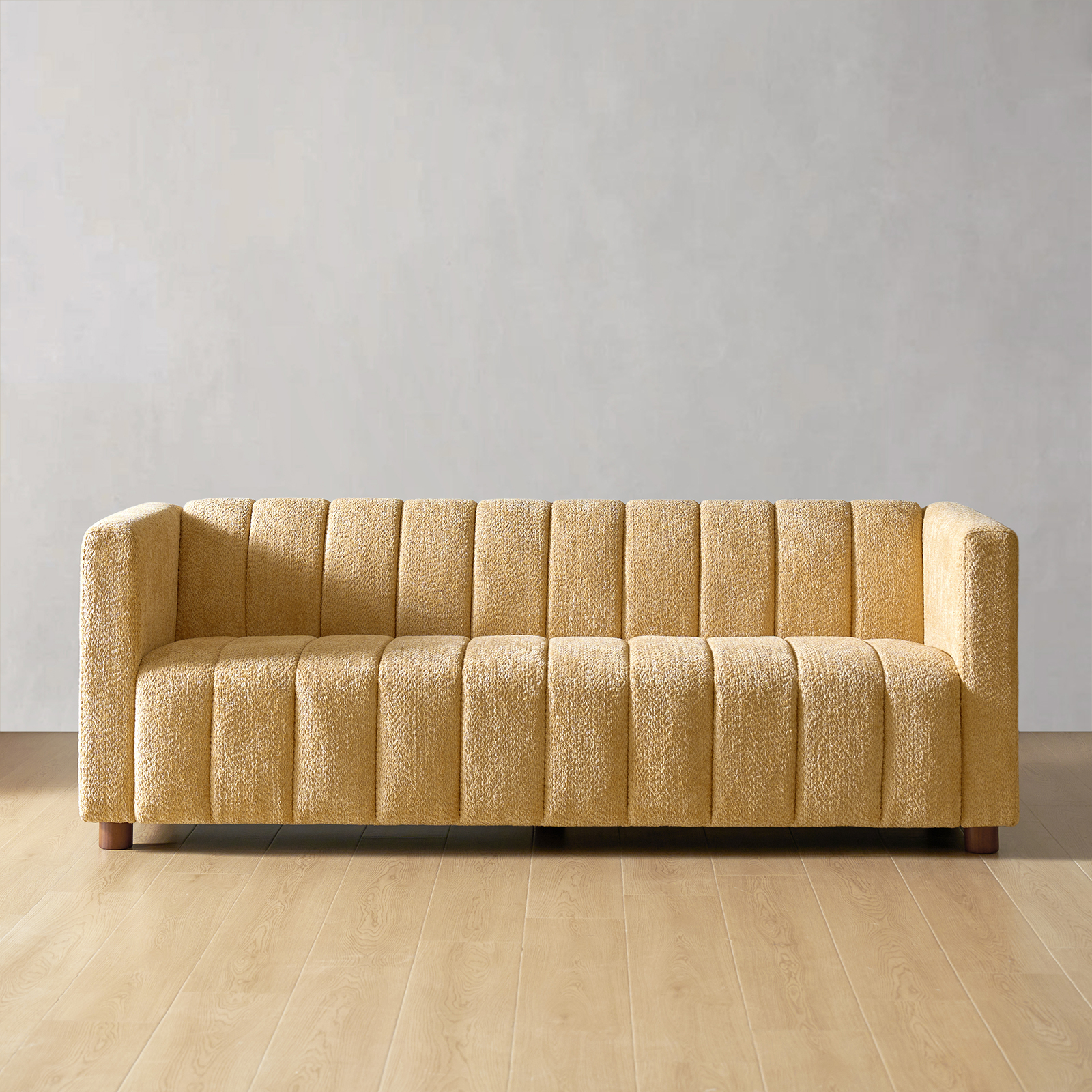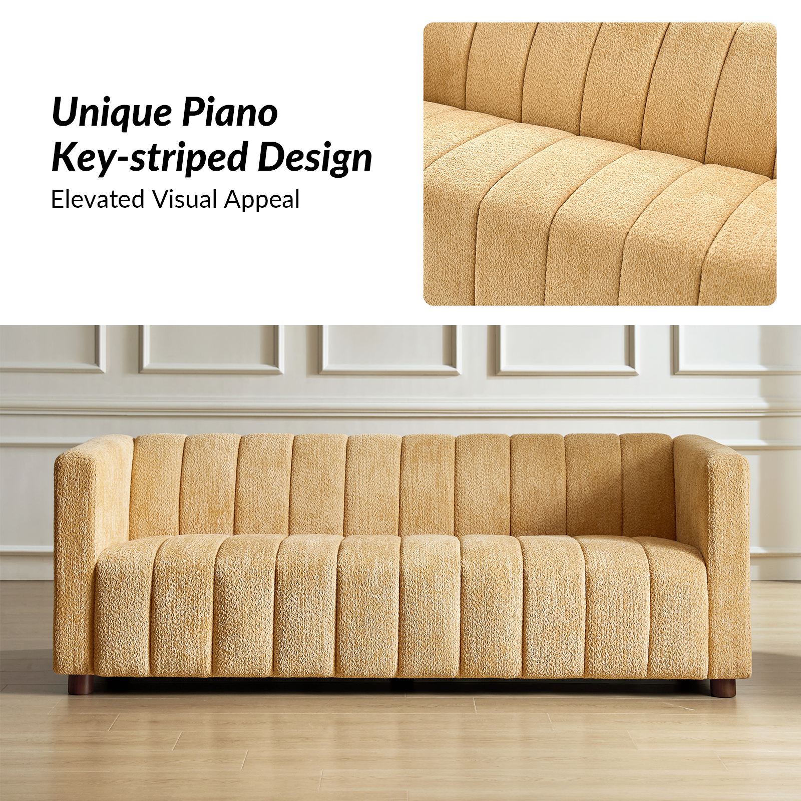 Add a touch of modern elegance to your living space with the Aragon Boucle Piano Key-Striped Modern Sofa. This sofa combines a contemporary design with a sophisticated texture, making it a stylish and comfortable addition to any home. The boucle fabric offers a cozy and refined touch, while the piano key-striped appearance creates a striking visual element that’s sure to impress.