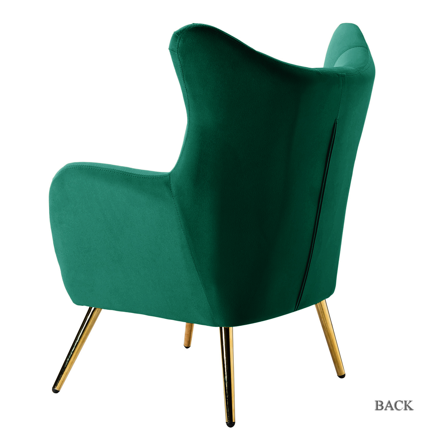 Looking to add a touch of glam to your living room or bedroom? This green velvet wingback accent chair adds an eye-catching touch to your space. It boasts a classic and contemporary style with a dramatic wingback design. Made with premium velvet fabric, it’s comfortable to the touch and features a solid green hue. High-density foam filling with a metal and manufactured wood frame provides both comfort and support. The slender polished golden metal legs bring a modern design element. This chair features button tufting and detailed stitching for a tailored touch making it perfect for your living room, office, or bedroom.