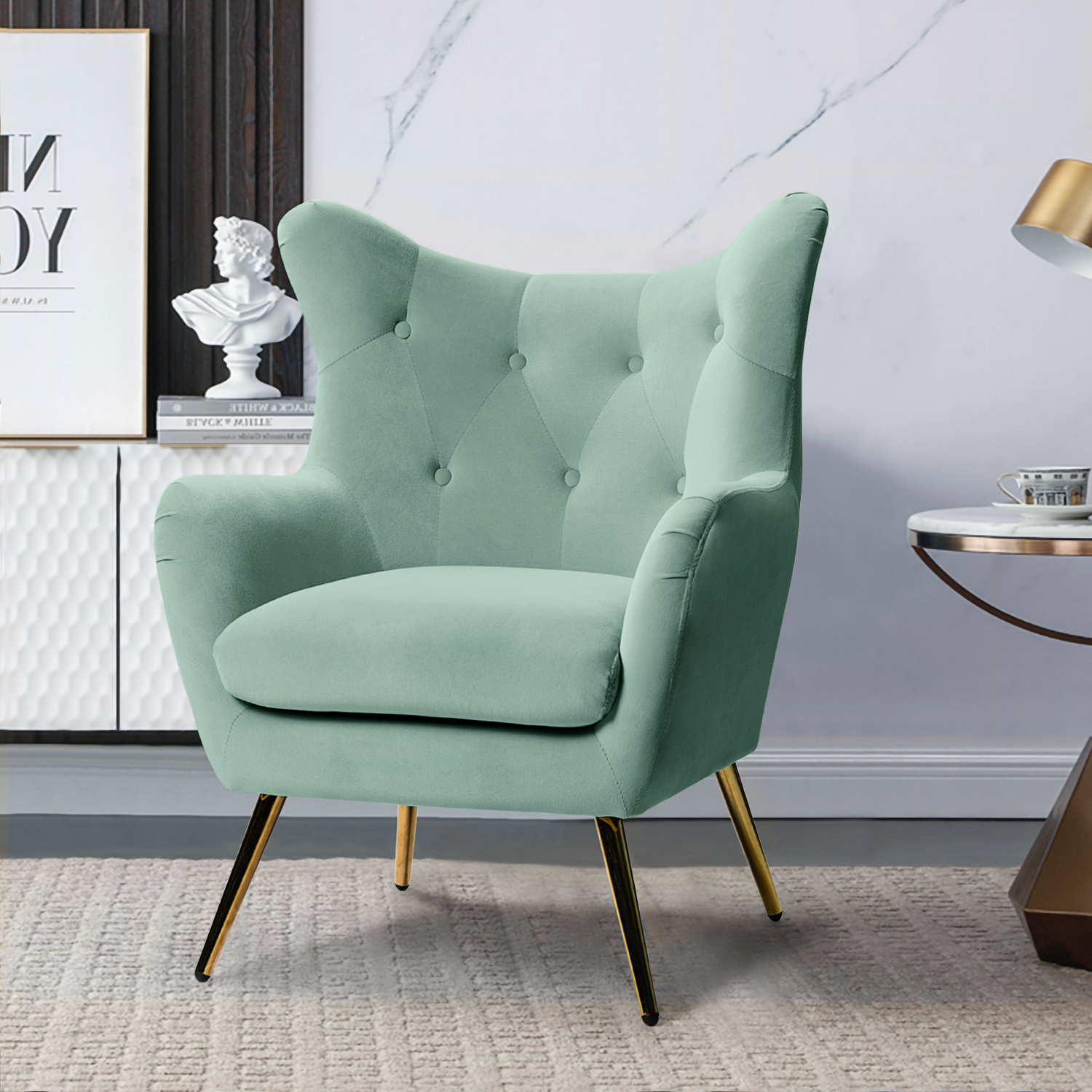 But it’s not just about looks! This chair is built for comfort and support. High-density foam filling, combined with a sturdy metal and manufactured wood frame, ensures a comfortable and stable seating experience. The slender, polished golden metal legs add a modern touch and enhance the chair’s overall timeless appeal. The iconic wingback silhouette, flared arms, button tufting, and detailed stitching provide a tailored and sophisticated look. Perfect for your living room, office, or bedroom, this chair is a versatile and stylish addition to any home.
