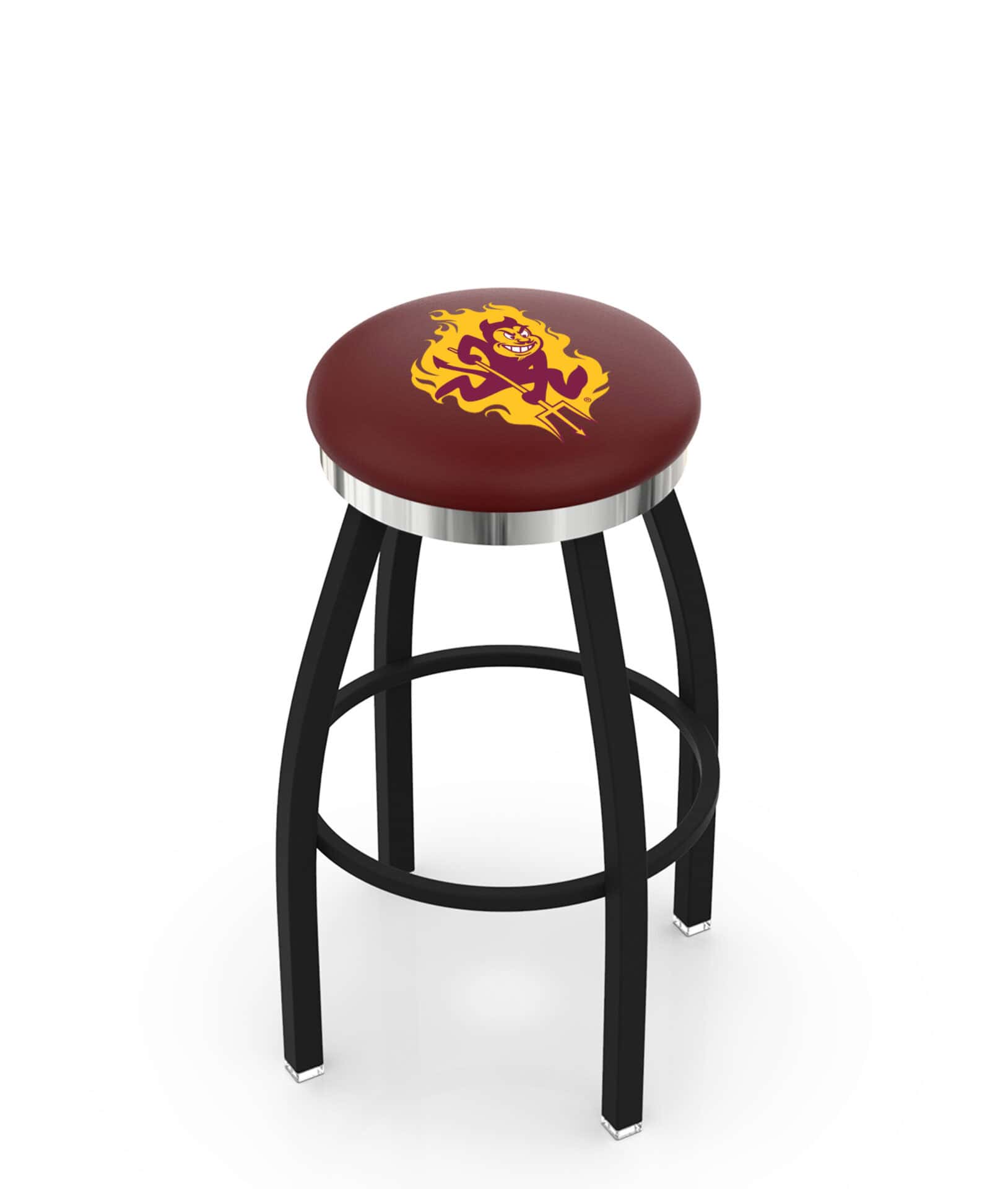 Elevate your bar, game room, or man cave with this officially licensed 25-inch swivel backless counter stool. Designed for the ultimate sports fan, this stool combines durability, functionality, and style. Featuring a sleek black wrinkle finish, a sturdy single-ring steel base, and a vibrant Sparky logo, this stool ensures comfort and support with its 2.5-inch cushion seat. The stool’s premium materials and craftsmanship guarantee long-lasting performance and a stunning finish that resists chips and scratches.