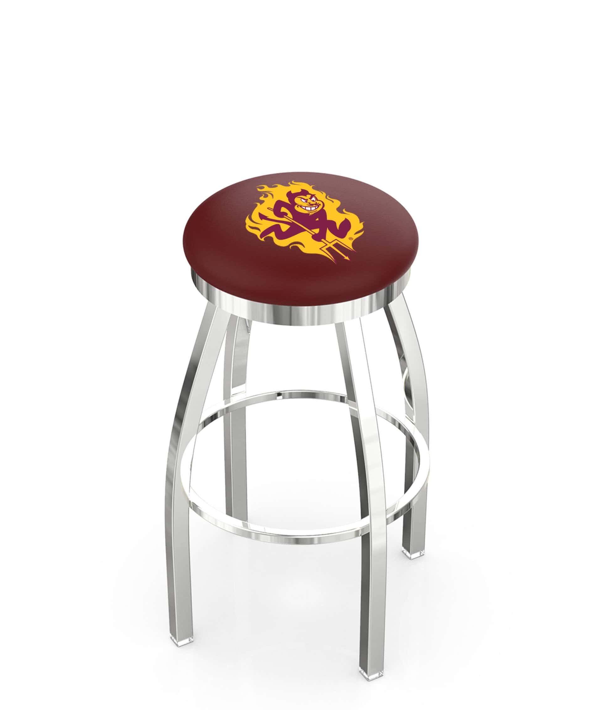 The Arizona State University 36-Inch Swivel Backless Extra Tall Bar Stool combines sleek design, robust construction, and premium comfort, making it the perfect addition to your bar, game room, or man cave. Featuring a durable chrome finish, a supportive cushion seat, and an officially licensed Sparky logo, this stool delivers both style and functionality. Its sturdy steel frame and swivel functionality ensure lasting performance, making it an excellent choice for sports fans and furniture enthusiasts alike.
