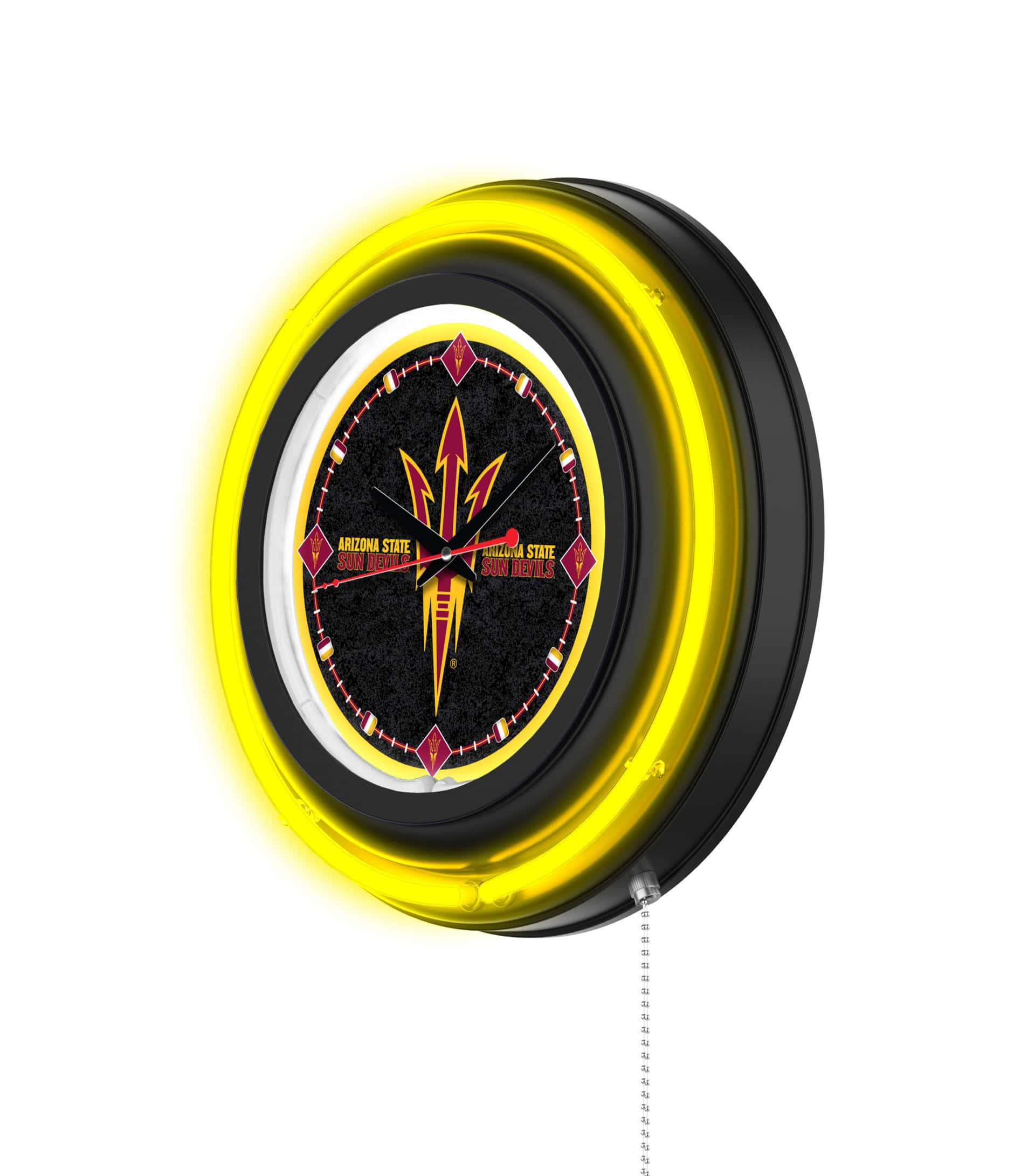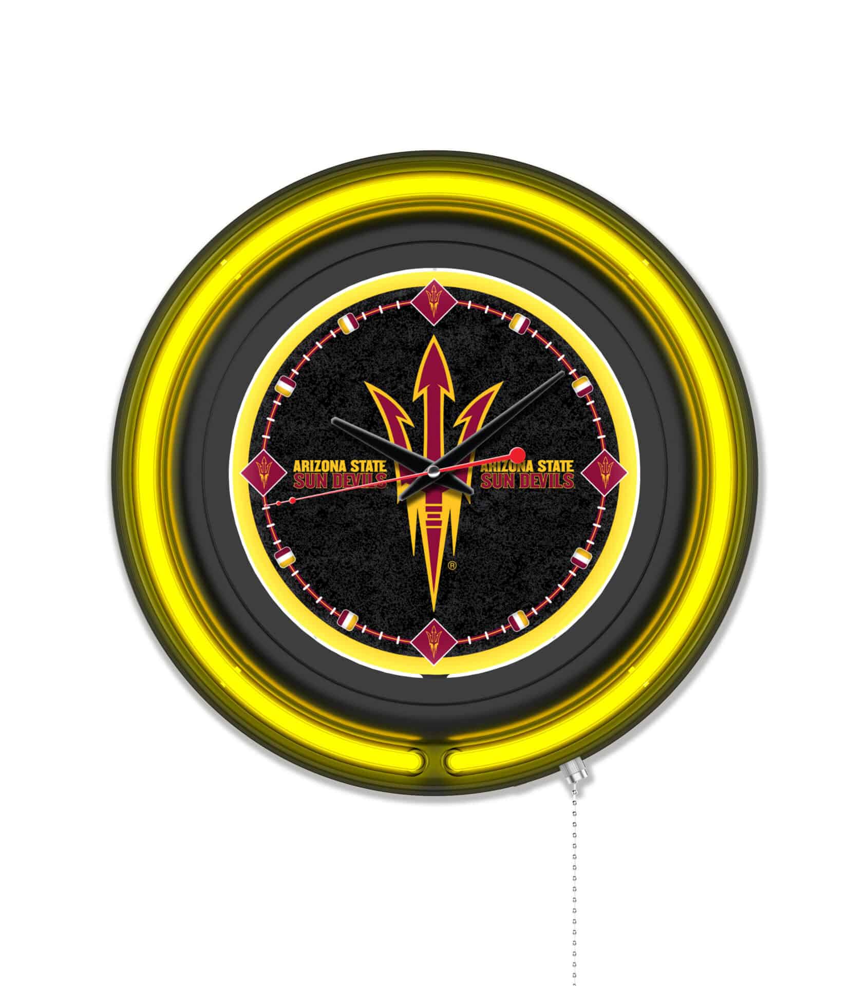 The Arizona State University (Pitchfork) 15-Inch Neon Logo Clock in Black is a stunning addition to any man cave, combining functionality with team spirit. This clock features a sleek black casing and vibrant neon accents that illuminate your favorite team’s logo. With its easy-to-use pull chain for turning the neon lights on and off, it’s perfect for showcasing your school pride while keeping track of time. The accurate quartz movement ensures you never miss a moment, making it an ideal gift for fans or a stylish upgrade for your own space.