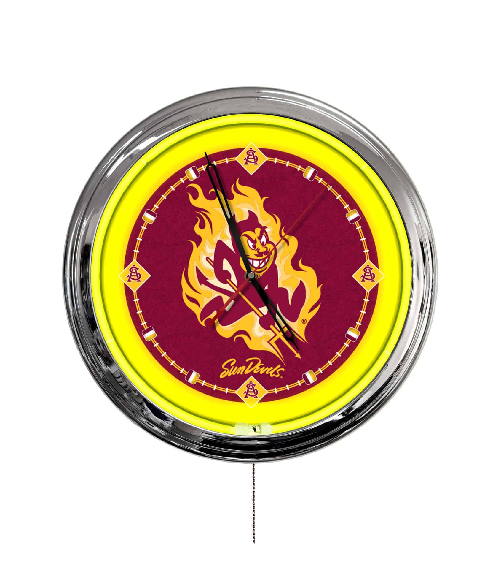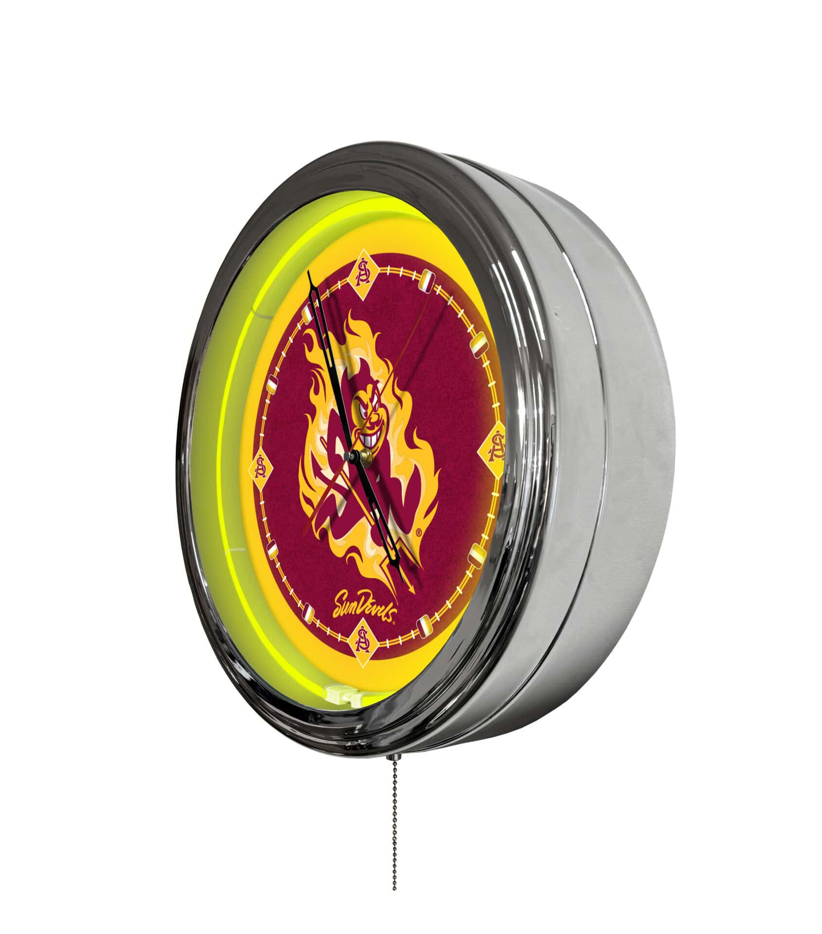This 16-Inch multi-color LED wall clock offers a modern and stylish addition to any space. With its vibrant illumination and sleek chrome casing, it showcases logos and brands in a captivating way. The clock features 20 static colors and 19 dynamic modes, allowing you to tailor the ambiance to suit your mood or event. Whether you want a steady glow or a dynamic light show, this clock adapts effortlessly. The included wireless remote enables easy adjustments to color, mode, speed, and brightness, making it a versatile choice for any man cave or game room.