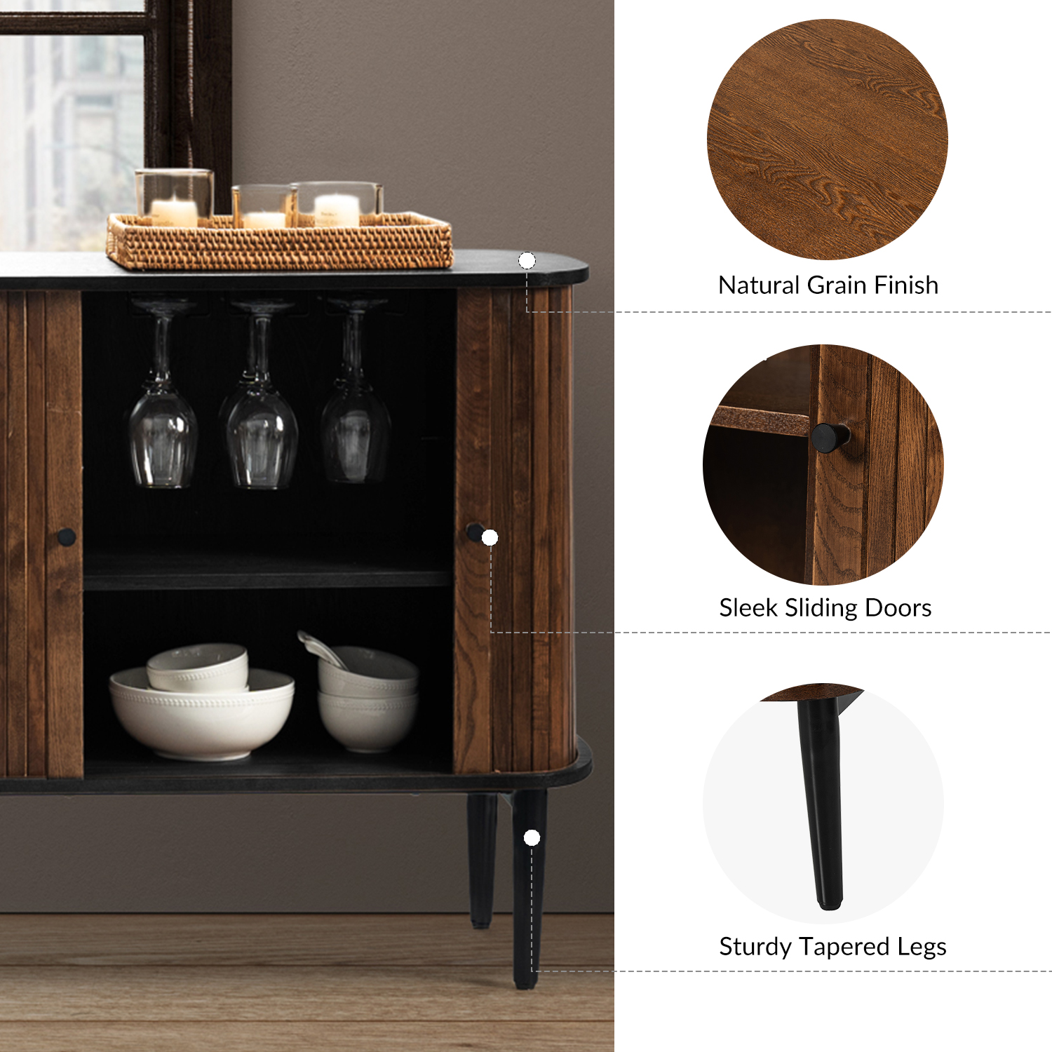 Armin Walnut Modern Sliding Door Sideboard with Natural Grain
