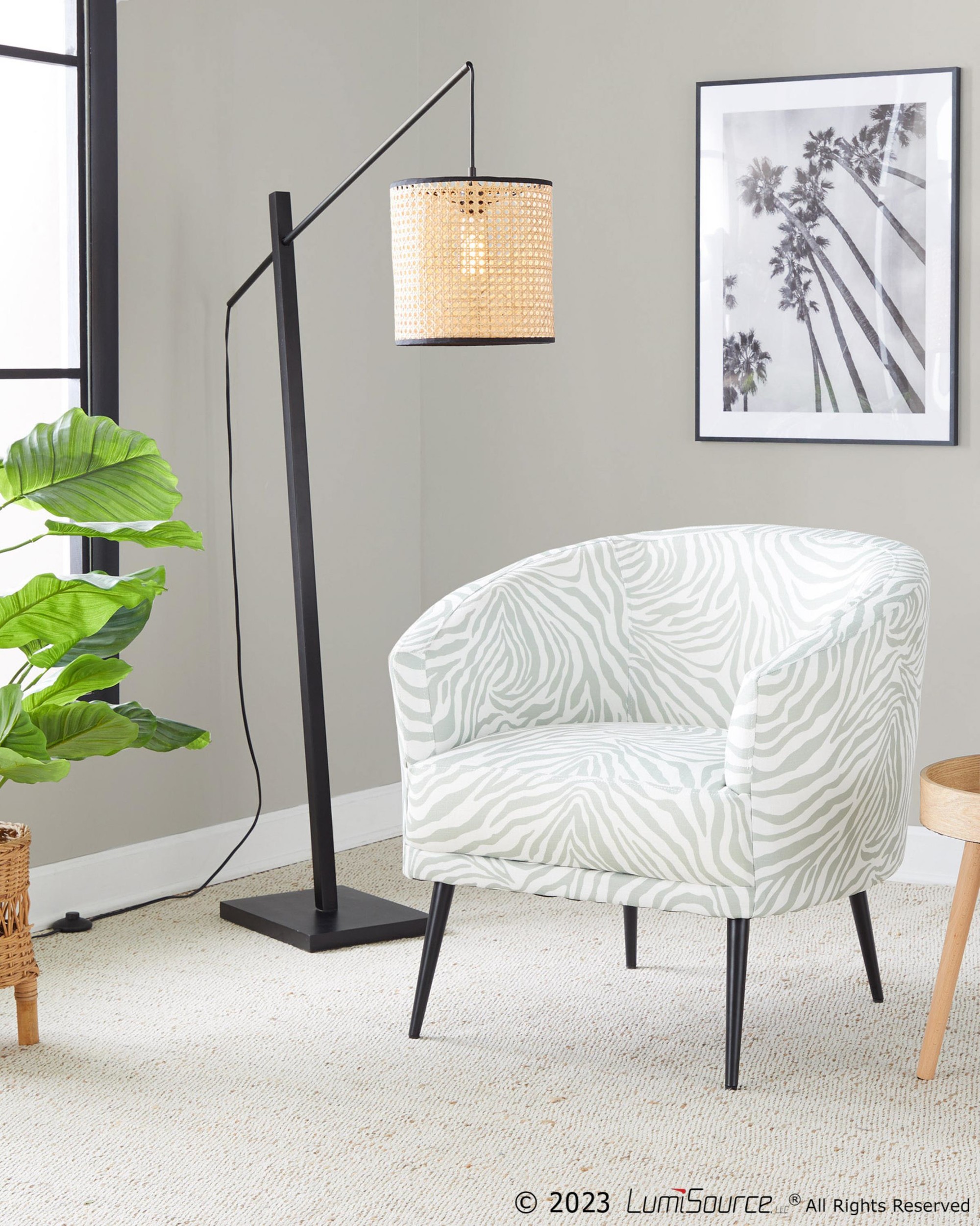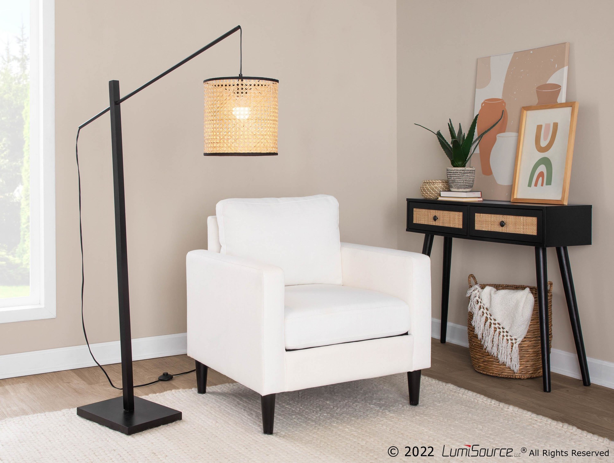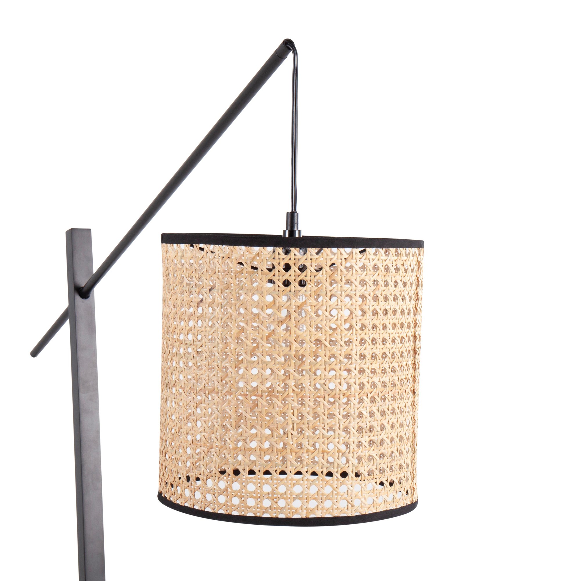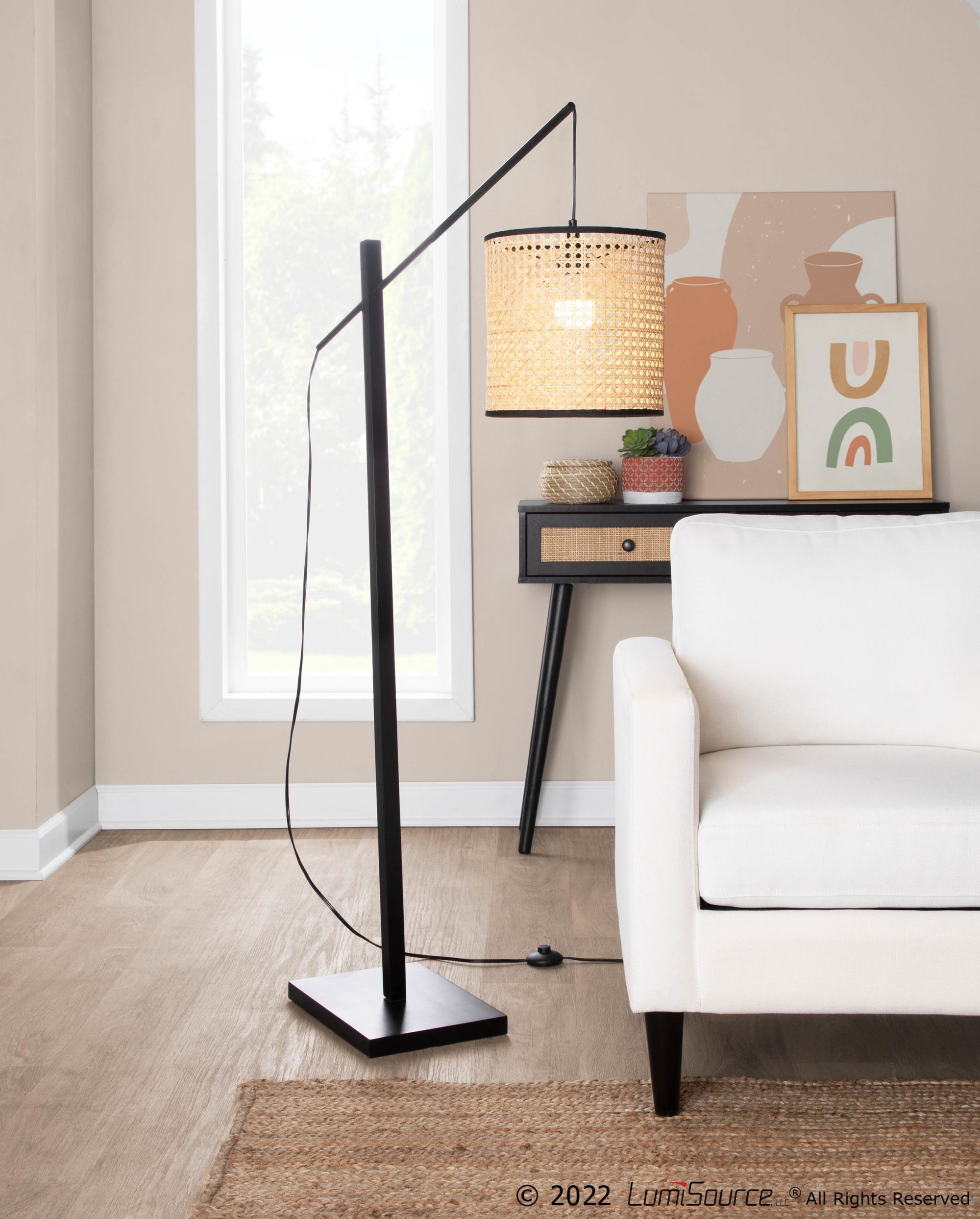 Arturo Contemporary Black Wood and Steel Rattan Floor Lamp