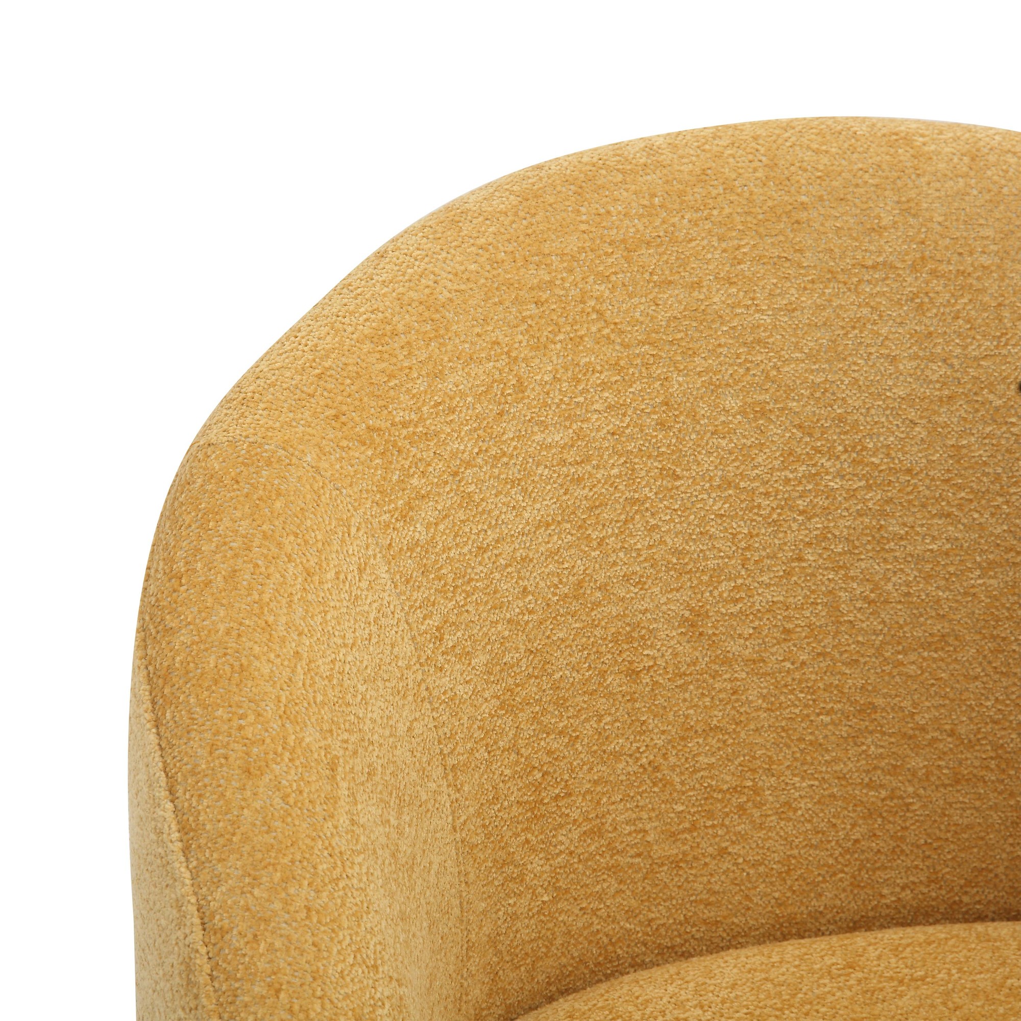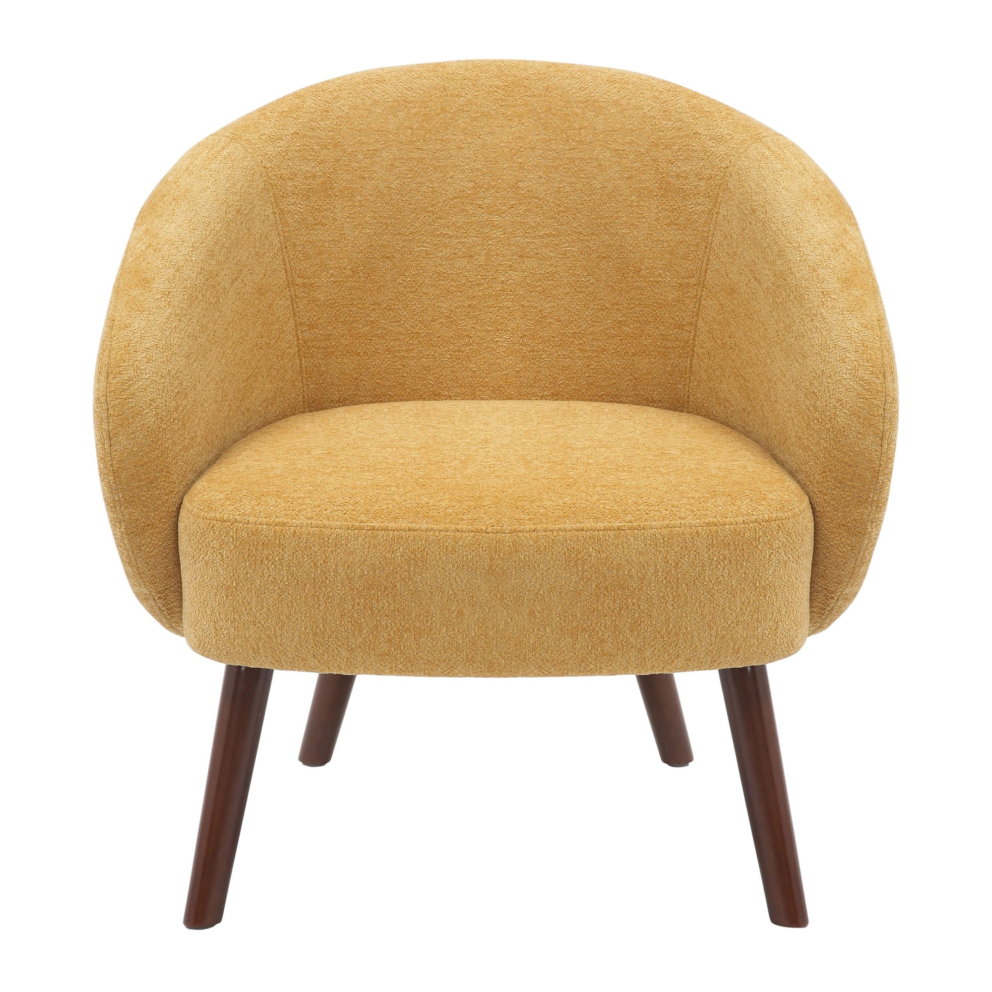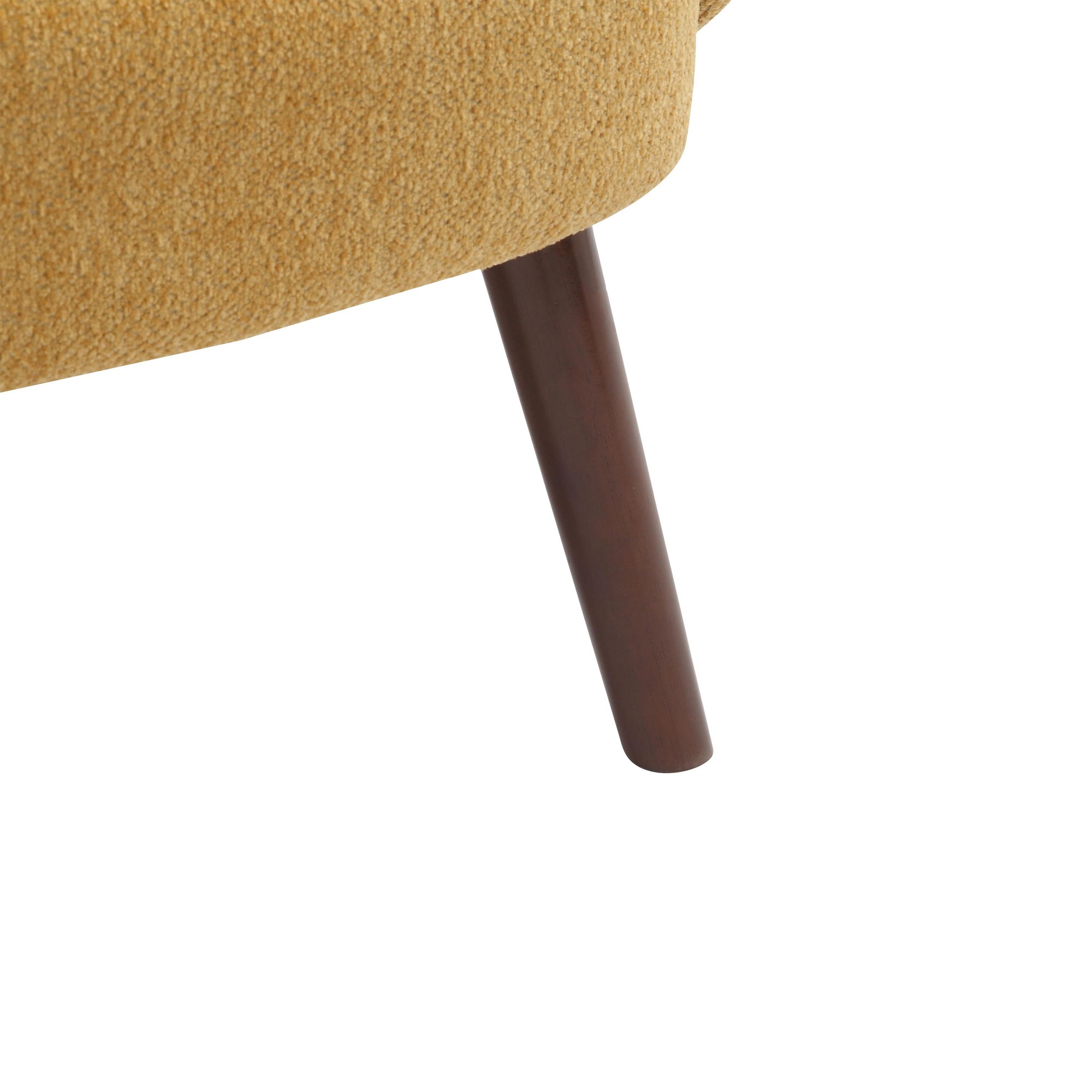Add style and comfort to your space with this Contemporary Lounge Chair. It has a stylish yellow fabric that adds warmth to any room. The walnut wood finish legs give it a rich, modern look. This chair has a padded seat and backrest for extra comfort. Its round backrest design makes it a great addition to your living room or office. It has an inside seat width of 21″ and a seat depth of 20″. Some assembly is needed. It holds up to 250 lbs.