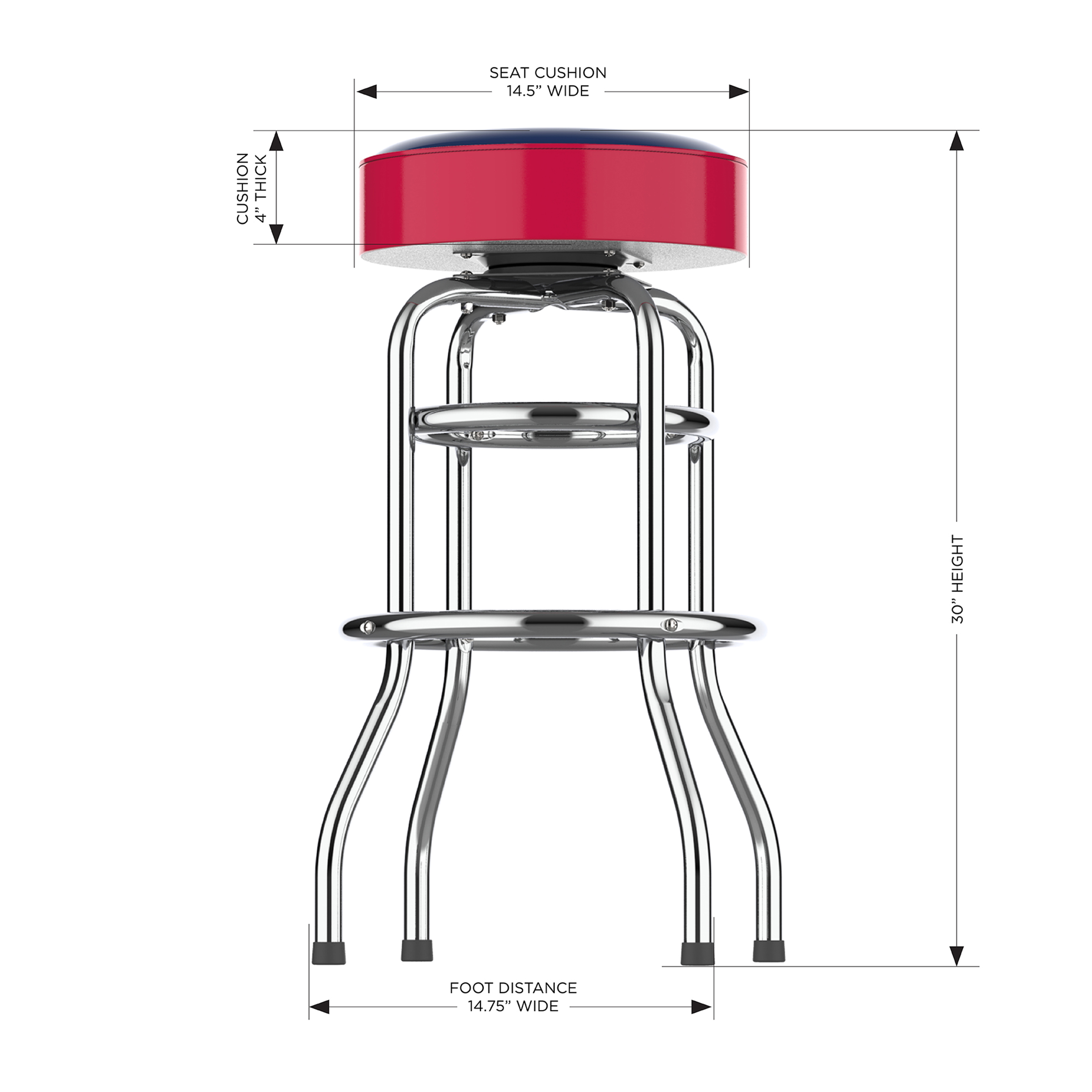 This commercial-grade bar stool is the perfect way to show off your team pride! Built to last, it features vibrant team colors and logos that are designed to withstand wear and tear. Enjoy years of comfortable seating and unwavering team spirit with this awesome addition to your fan cave!