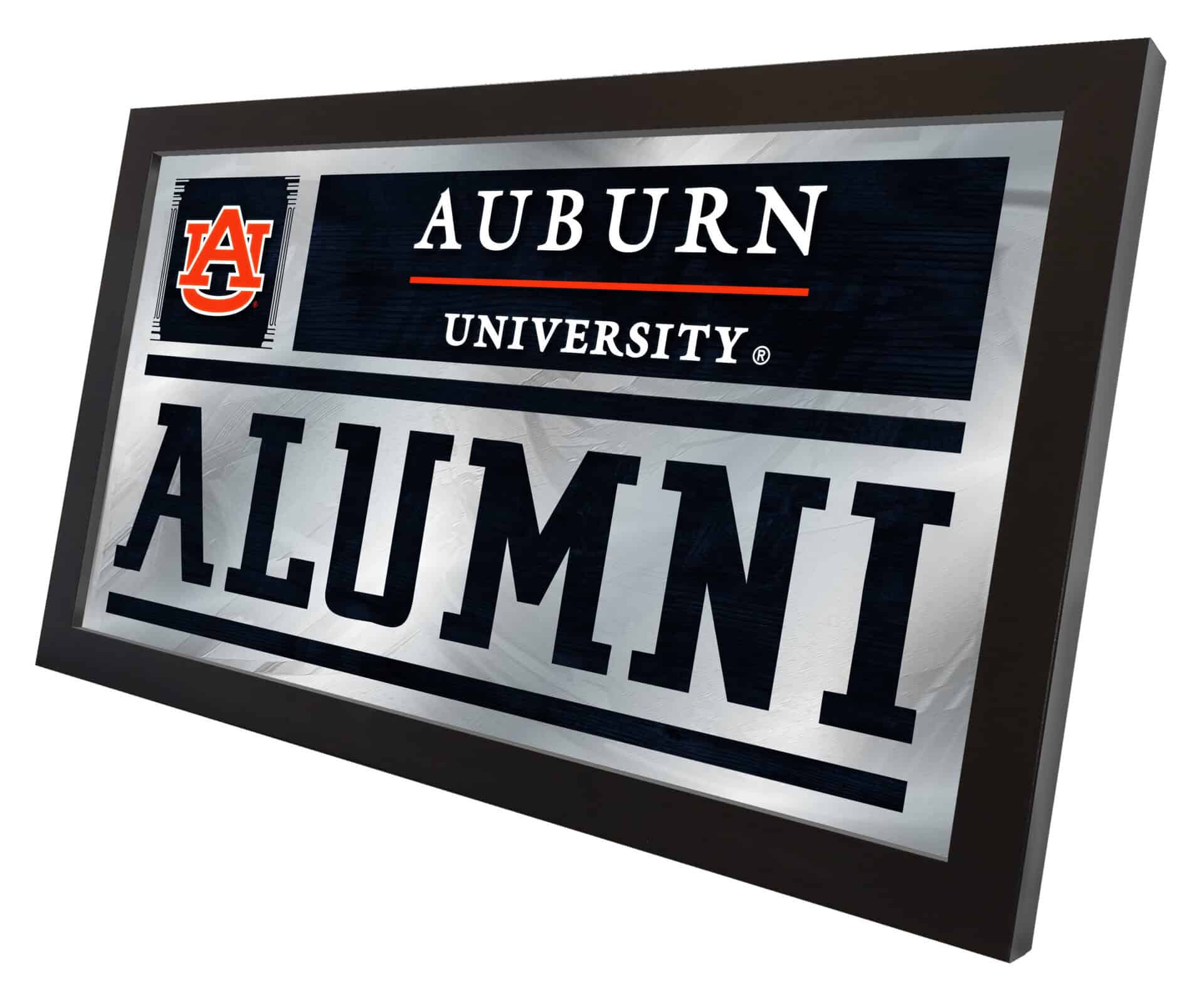 Show your school pride with the Auburn University 26×15 Alumni Wall Mirror. With its simple yet elegant design, your school colors burst through the 1/8″ thick glass and are highlighted by mirrored accents. The mirror features a black, 1 1/4″ wrapped wood frame with saw tooth hangers, making it an ideal addition to your office, garage, or any room in the house. Whether you’re purchasing it as a gift for a recent graduate or for yourself, you can take satisfaction knowing you’re buying a mirror that proudly showcases your school spirit.