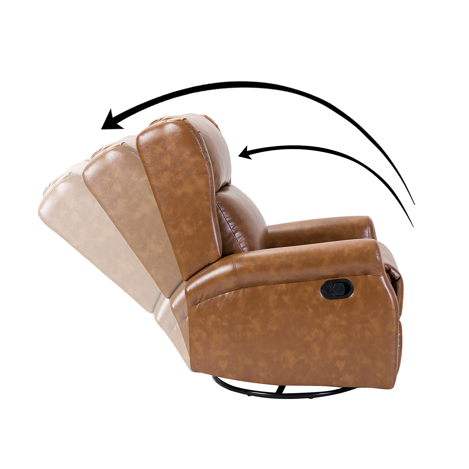 - The Azil Camel Vegan Leather Manual Swivel Wingback Recliner is the perfect addition to any living room or master suite, providing a stylish and comfortable spot to unwind. Its swivel function and reclining capabilities make it a versatile piece for any space.