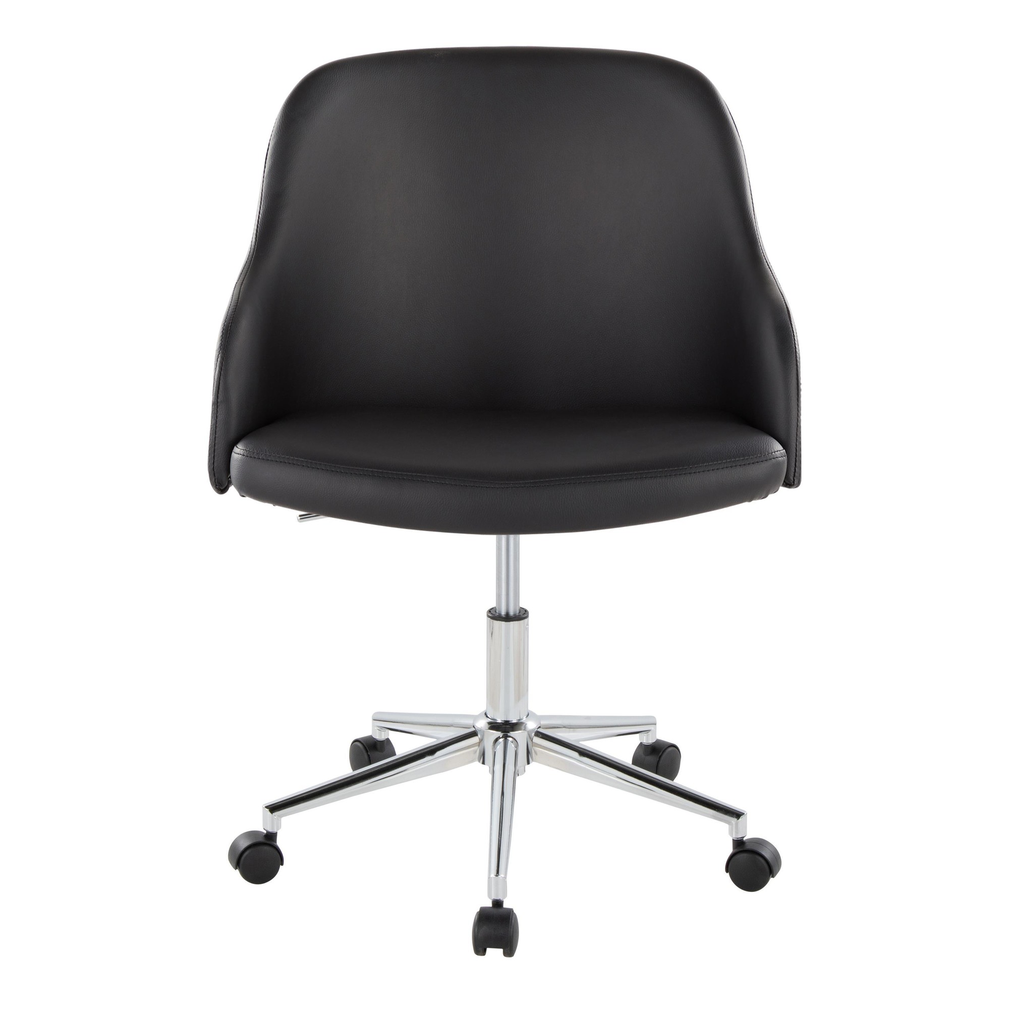 The Bacci Office Chair blends heritage design with modern versatility. Its barrel-style curved wood back seamlessly transitions into subtle armrests, adding functional style to any home office. The adjustable five-star base ensures comfort and mobility.