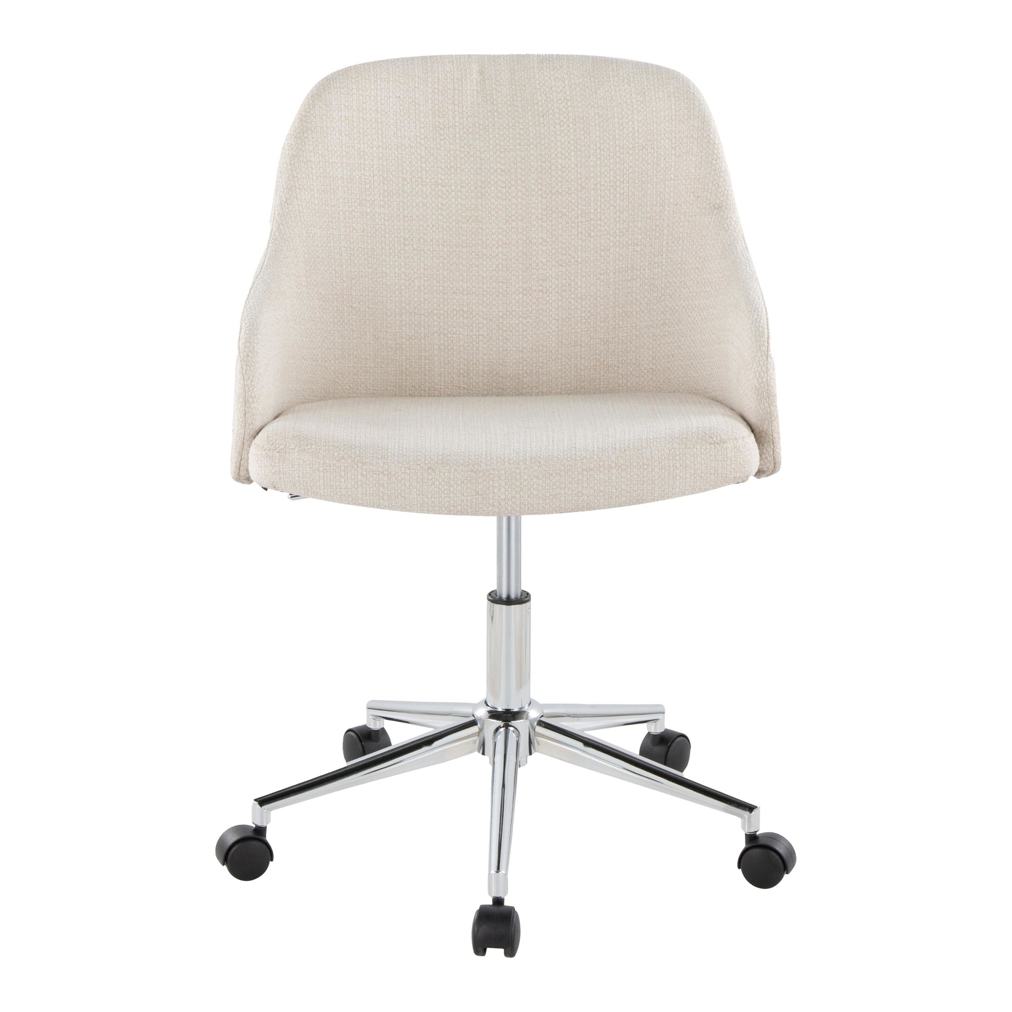 This contemporary office chair blends heritage design with modern functionality, making it a stylish and comfortable addition to your workspace. The Bacci Office Chair features a barrel-style curved wood back that seamlessly transitions into armrests, providing both support and a touch of elegance. Enjoy customized comfort with its adjustable height and 360-degree swivel function.