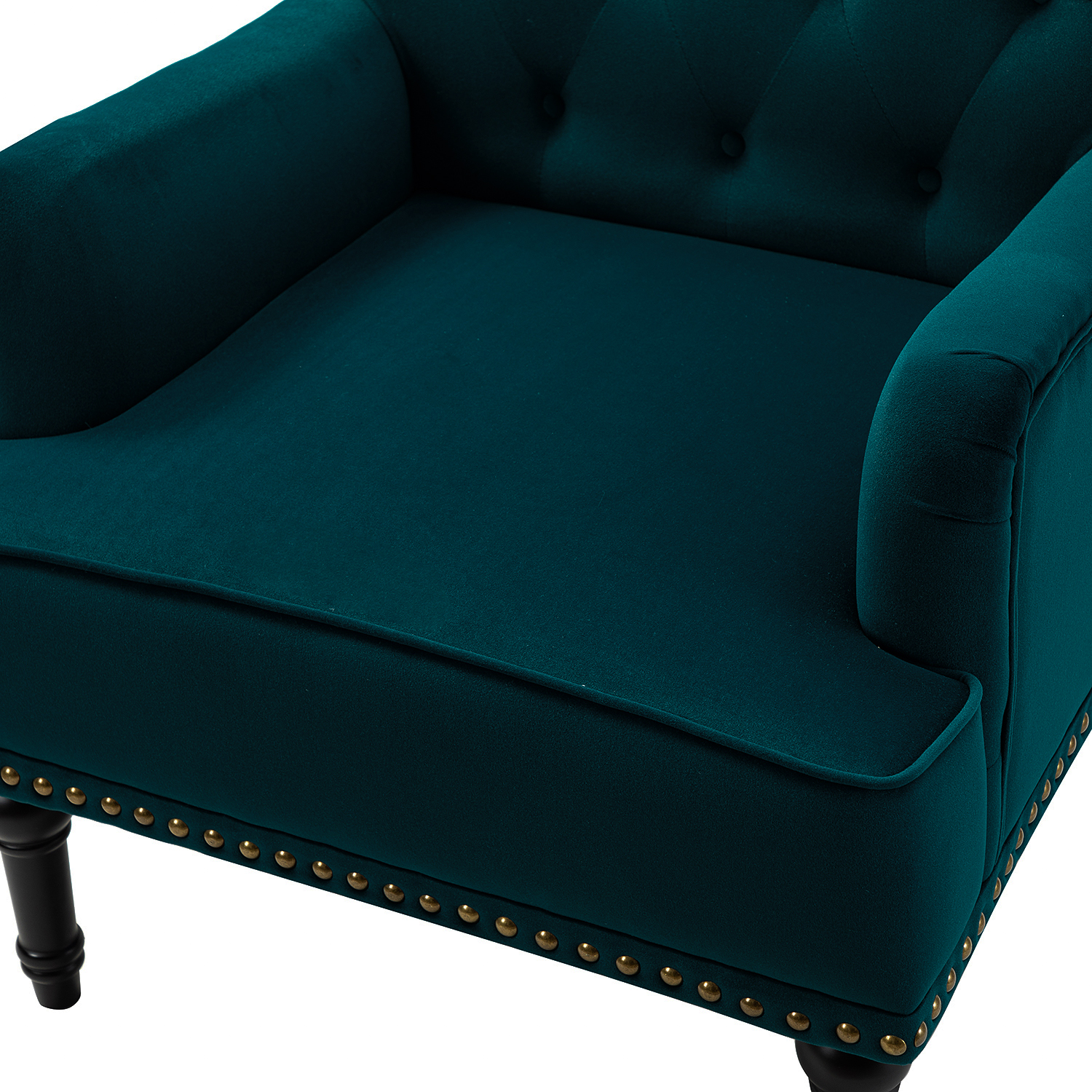 • The glam nailhead trim and button-tufted backrest create a visually stunning piece. Sink into the plush velvet fabric and enjoy the comfort of the built-in s-spring seat.