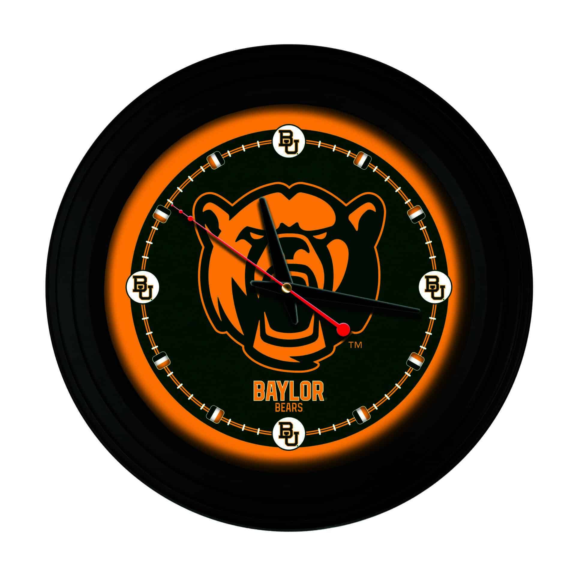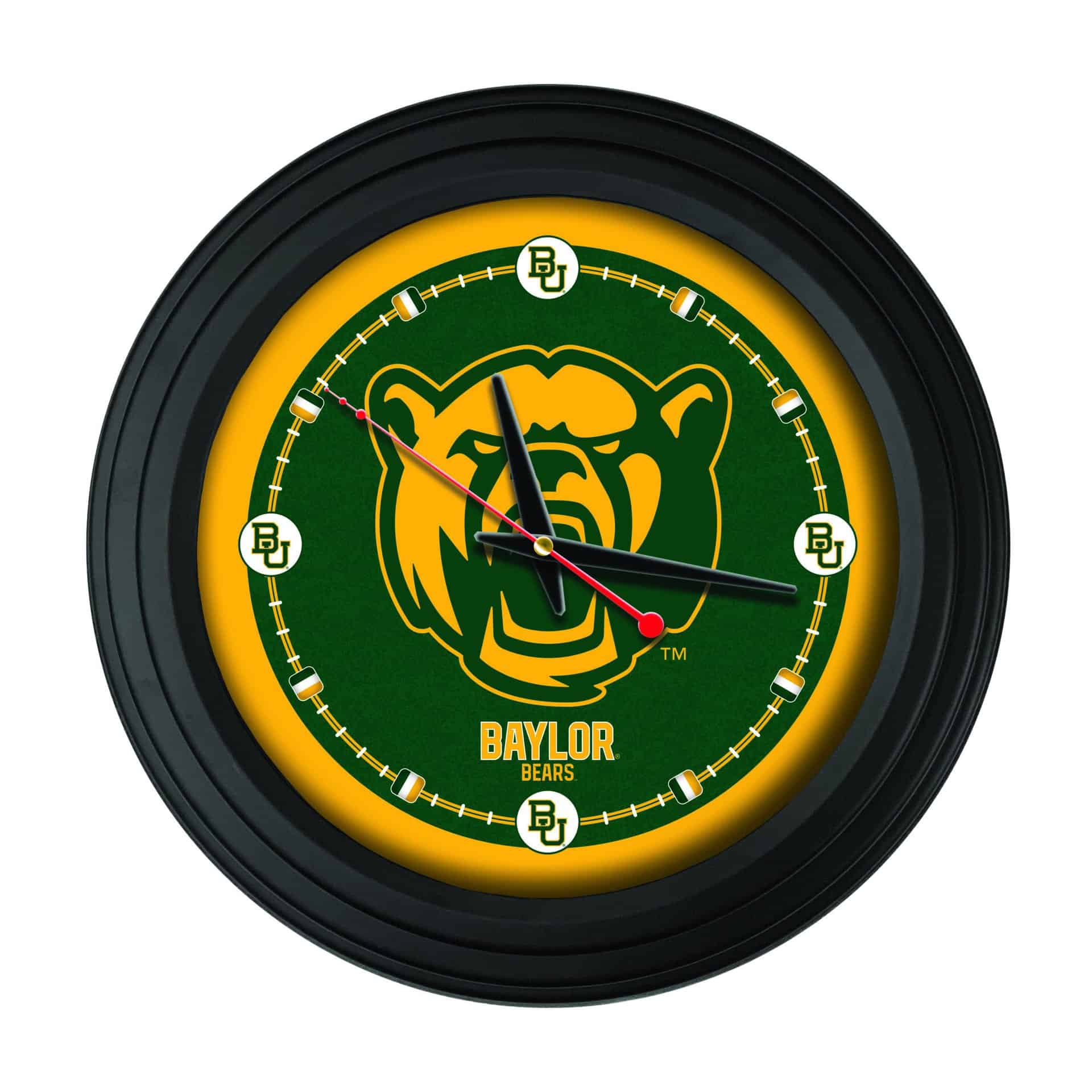 This black cased 15-Inch Traditional Logo Clock is the perfect way to show your school pride. Featuring officially licensed vibrant, full-color digitally printed graphics, this clock remains protected behind a glass lens face. Accurate quartz movement ensures precise timekeeping, powered by a single AA battery (not included). The recessed hanger allows for a clean, flat wall display, making it an ideal gift for graduates, sports enthusiasts, or a stylish addition to your own space.